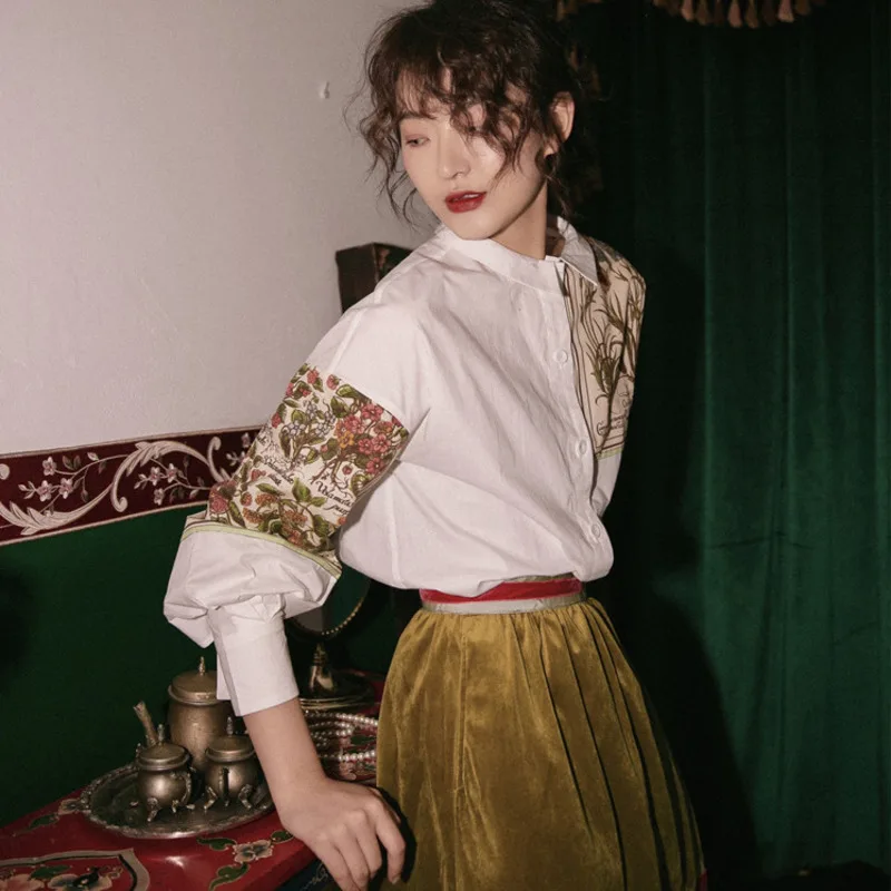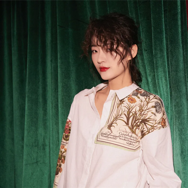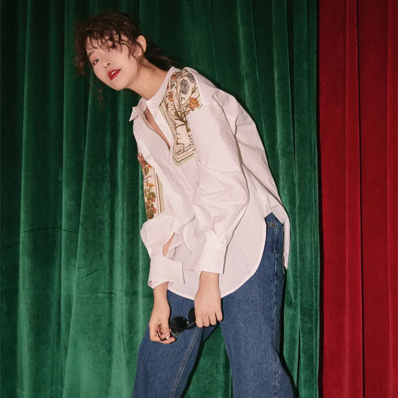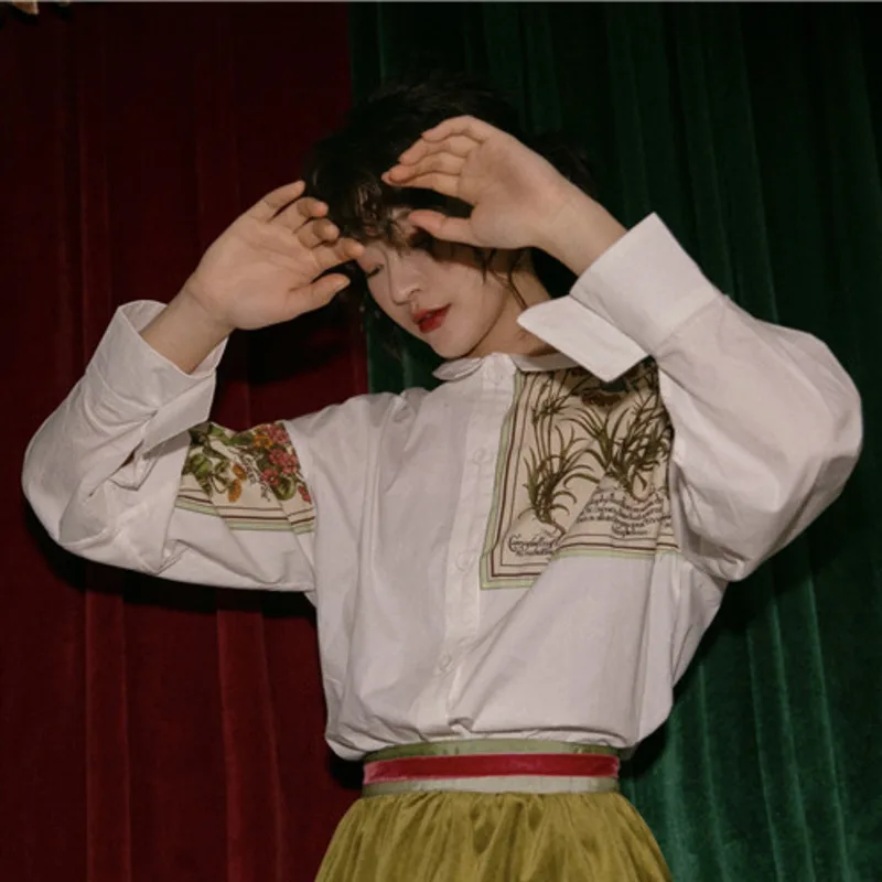 Special Offer LANMREM 2020 wiosna lato odzież dla kobiet botanika Atlas drukowanie biała koszula luźne casualowy wzór z długim rękawem bluzka YH07300 Discount 26% Today!