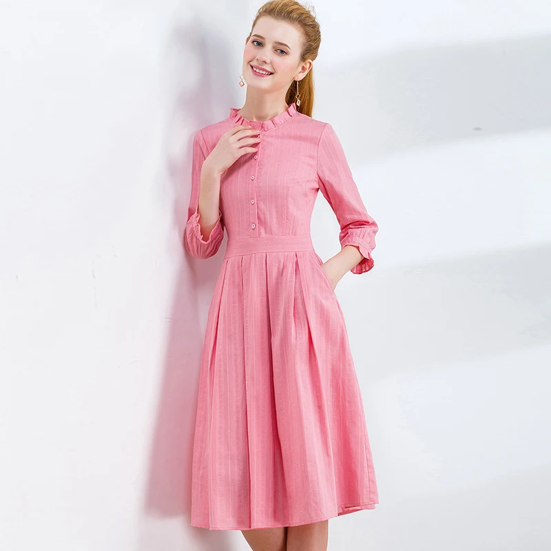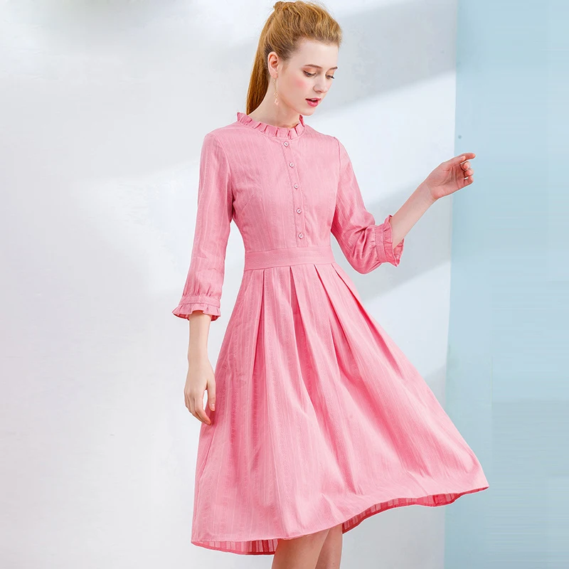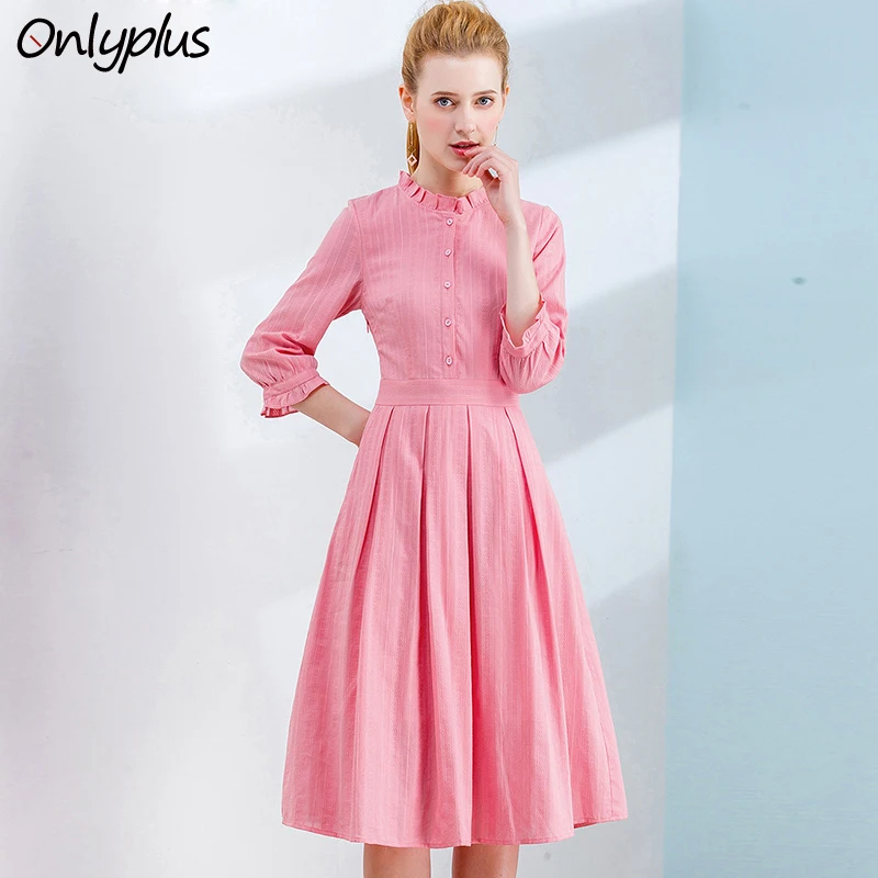 Special Offer Tylko plus różowa sukienka damska zapinana na guziki pół rękawa falbana Hem jednoczęściowy strój różowa przylegająca elegancka sukienka 2020 wiosna kobieta Discount 35% Today!