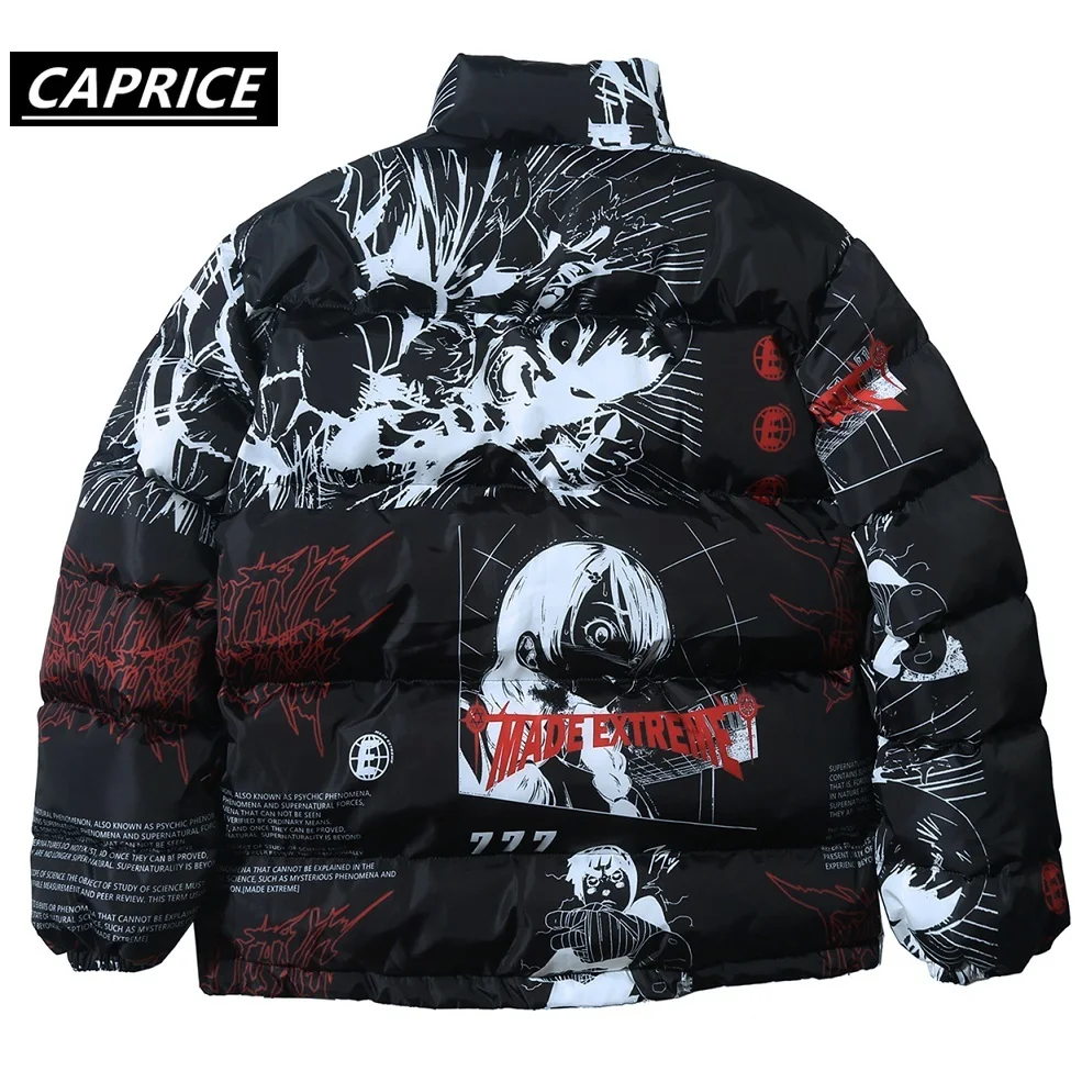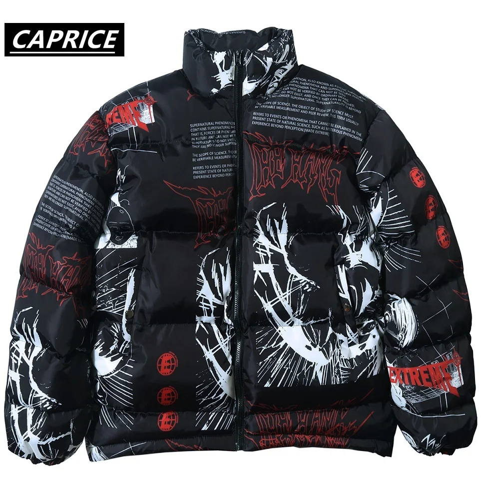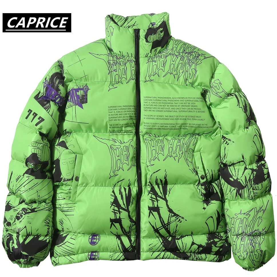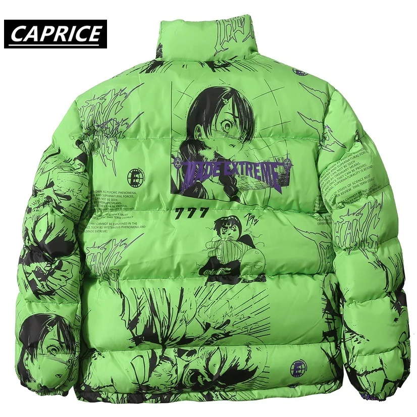 Special Offer Hip hopowy druk komiksowy kurtka 2019 mężczyźni kobiety Harajuku zima gruby parki Streetwear ciepłe kurtki japońska kreskówka Graffiti zielony Discount 40% Today!