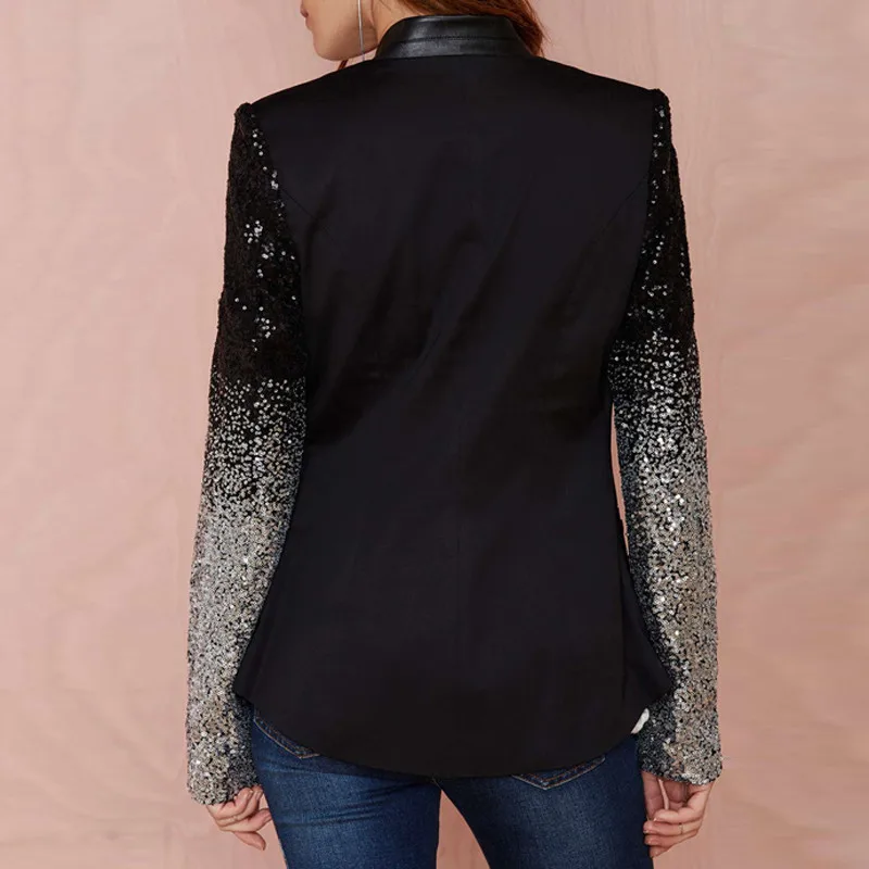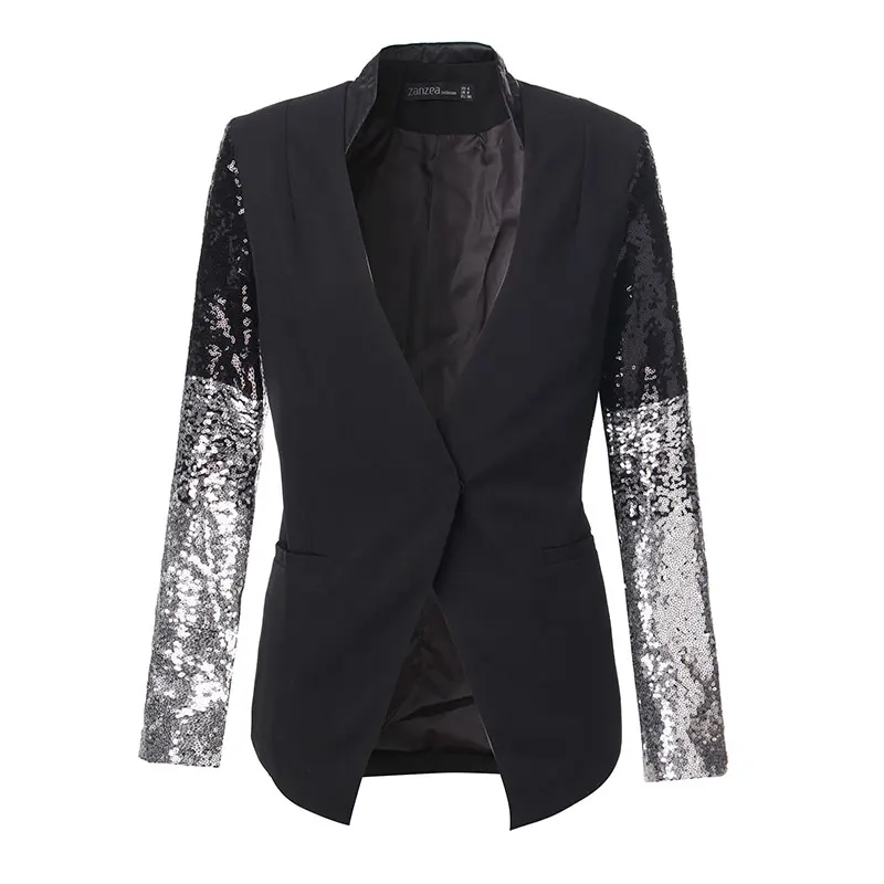 Special Offer Kobiety cienkie kurtki płaszcz z długim rękawem Lapel Blazers 2019 wiosna jesień Bling srebrny czarny cekin elegancki pracy garniturowy blezer Femme Discount 45% Today!