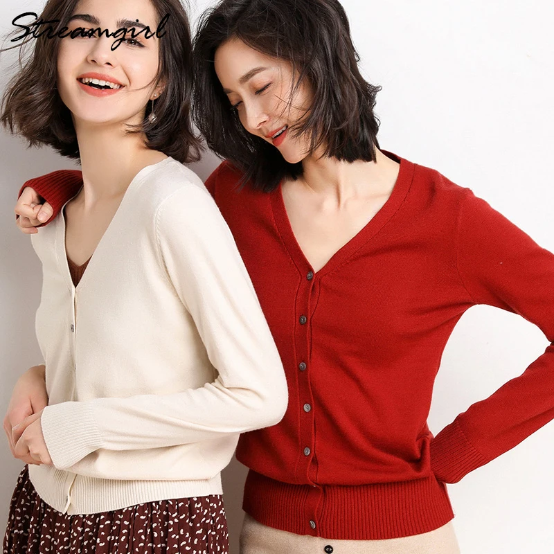 Special Offer Damski sweter z wełny sweter z dzianiny czerwony V Neck z dzianiny kaszmirowy kardigan z guzikami czarne damskie swetry rozpinane dla kobiet Discount 48% Today!