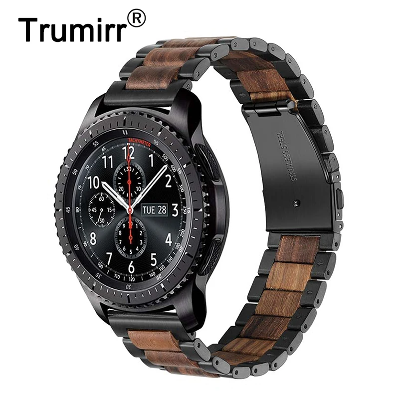 Special Offer 22mm ze stali nierdzewnej i drewna pasek do zegarka Samsung Gear S3 skrzynia biegów 2 Neo na żywo zegarka Huawei 2 klasyczny GT szybkie uwolnienie pasek pasek Discount 6% Today!