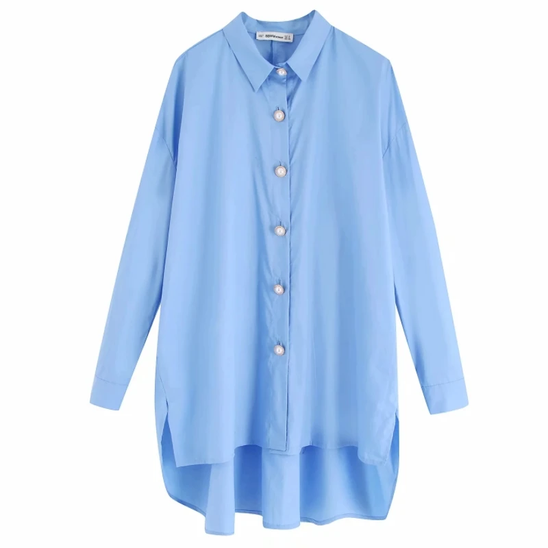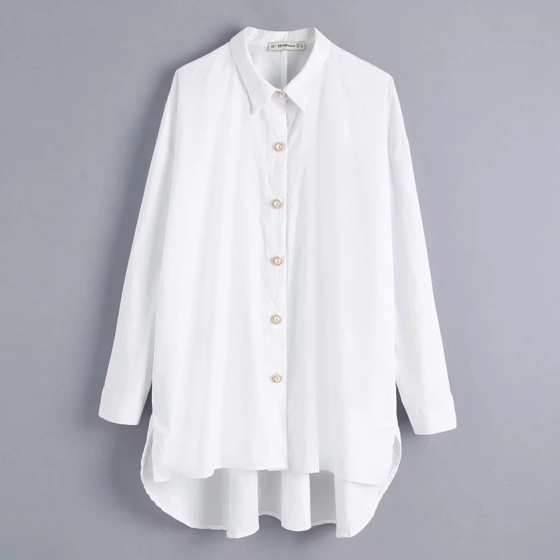 Special Offer Kobiety jednokolorowe perłowe guziki casual bluza bluzka koszule damskie z długim rękawem luźne blusas elegancki biały femininas topy LS4232 Discount 23% Today!
