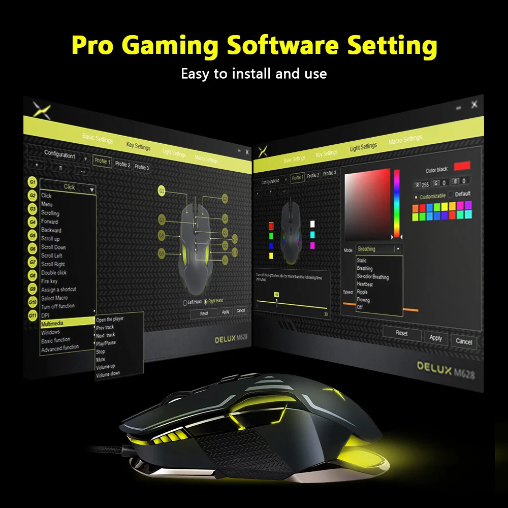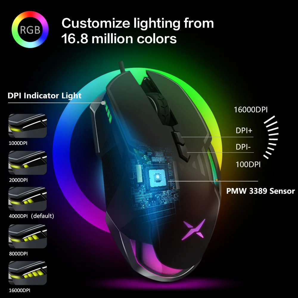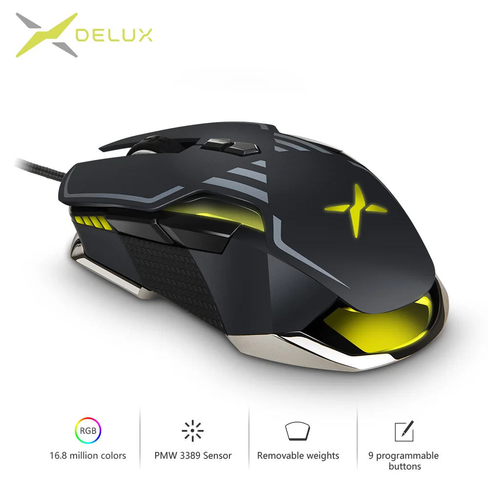 Special Offer Delux M628 PMW3389 czujnik 16000 DPI mysz do gier 9 przycisków 50G ACC RGB przewodowe optyczne obie ręce myszy z zestaw do ważenia dla graczy Discount 30% Today!