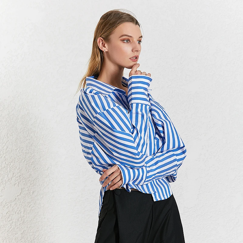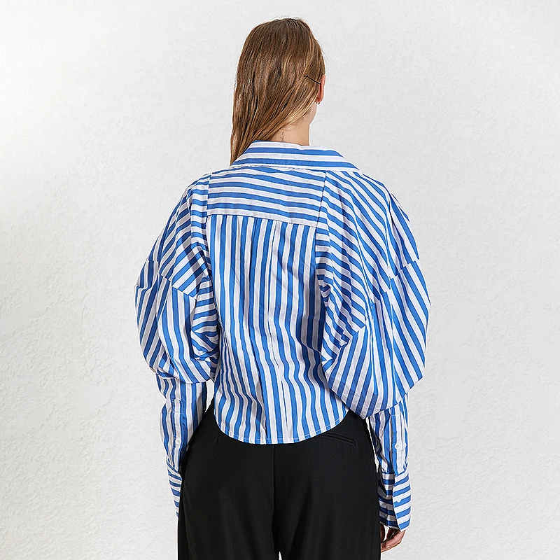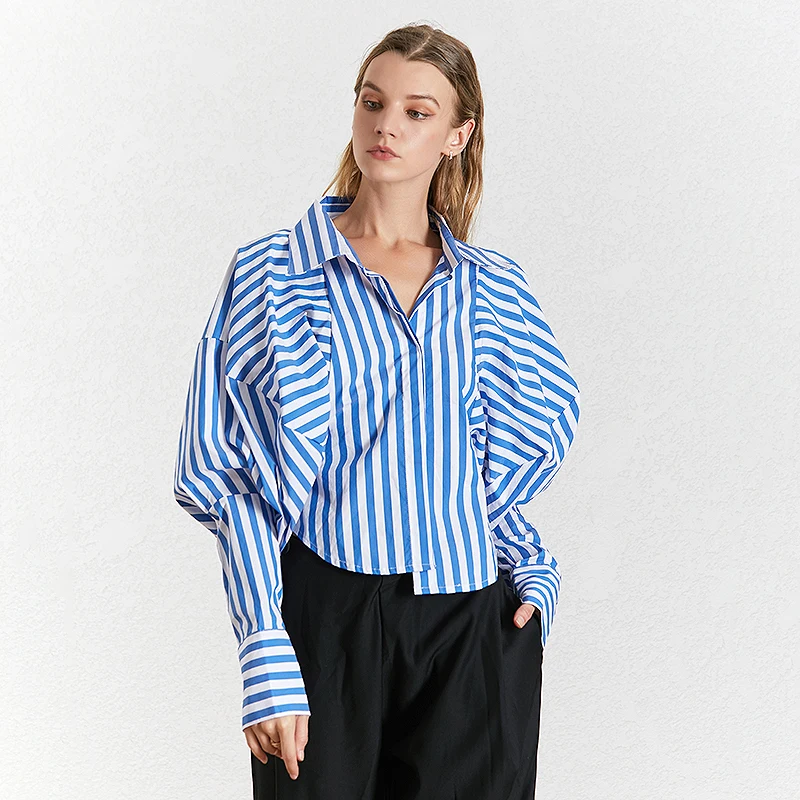 Special Offer TWOTWINSTYLE koreański paski koszula damska Lapel kołnierz Puff rękaw luźne asymetryczne codzienne bluzki kobiet 2019 moda nowy Discount 39% Today!