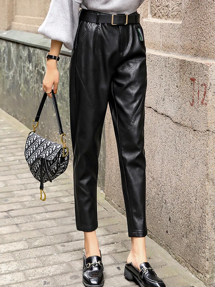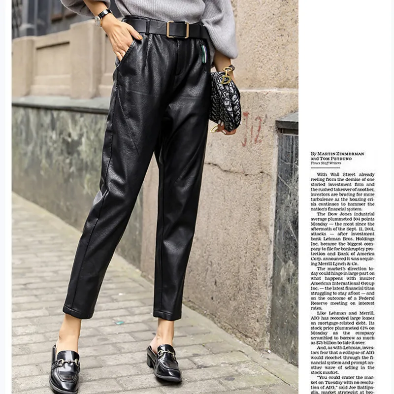 Special Offer JUJULAND kobieta spodnie ze skóry PU klasyczne czarne ciepłe wysokiej jakości PU proste spodnie nogi zimowe stylowe spodnie 1056 Discount 50% Today!