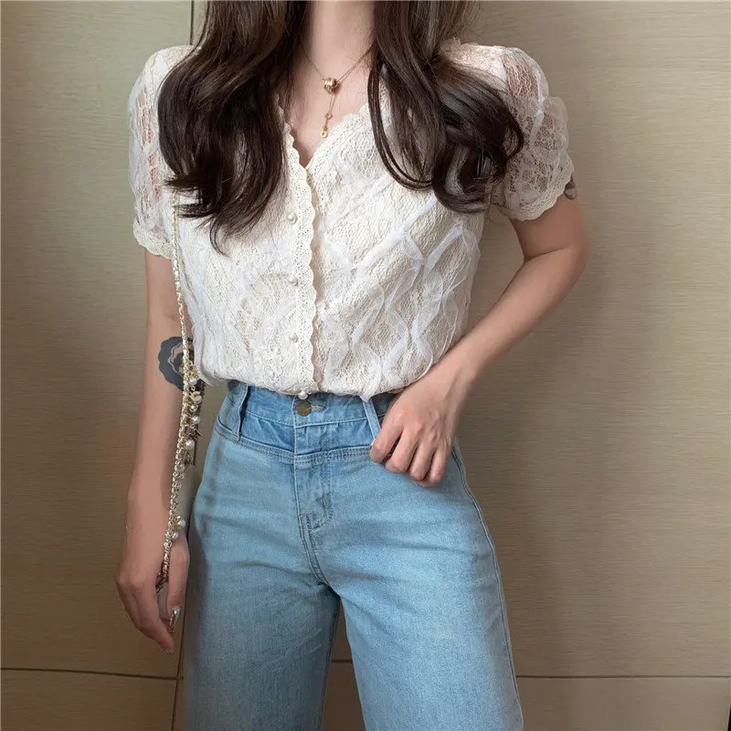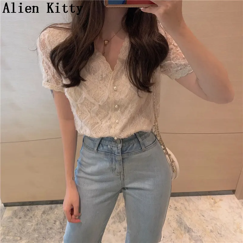 Special Offer Alien Kitty elegancka dekolt w serek seksowna luźna Korea szykowna damska bluza z krótkim rękawem Discount 30% Today!