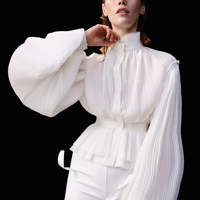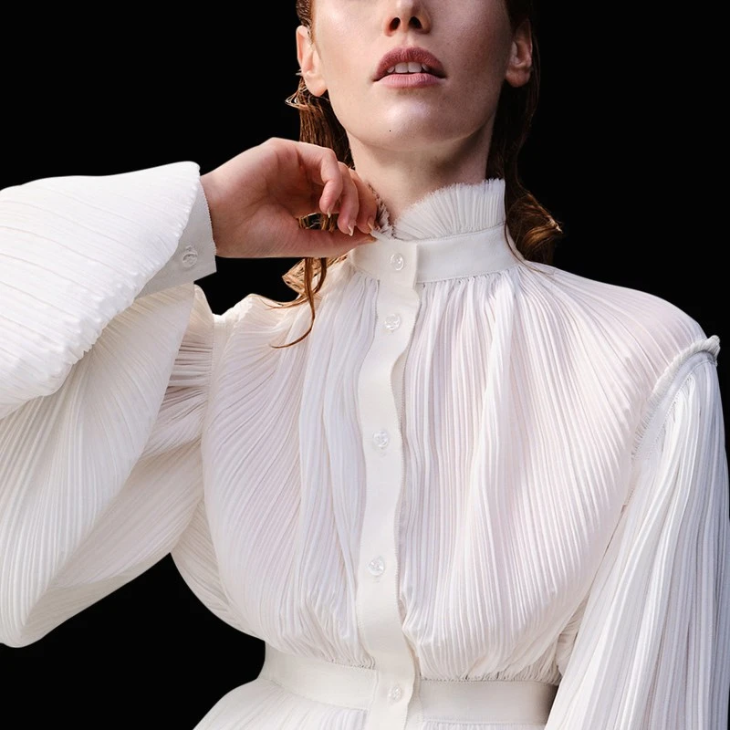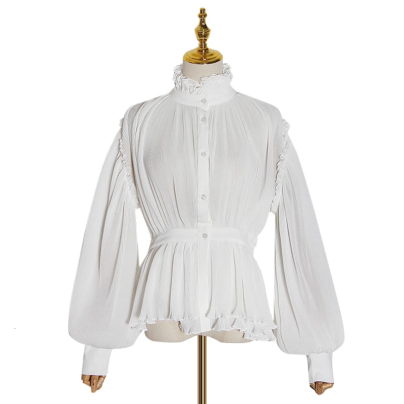 Special Offer TWOTWINSTYLE przyczynowe szyfonu Ruched bluzki damskie golfem latarnia tunika na długi rękaw koszule kobiet 2019 modna odzież fala Discount 39% Today!