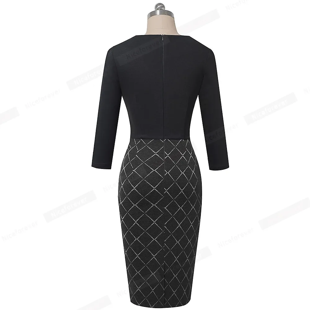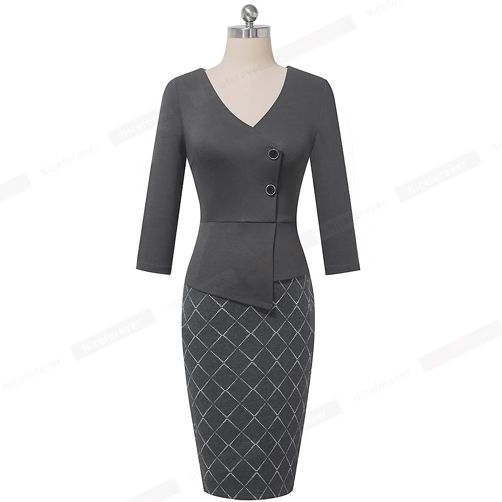 Special Offer Ładno na zawsze elegancka, patchworkowa z guzikiem praca biuro vestidos biznes formalne bodycon kobiety zimowa sukienka B564 Discount 40% Today!