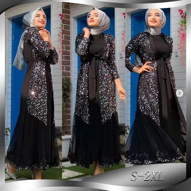Special Offer Cekiny Abaya Dubai Kimono suknia muzułmańska Islam odzież Abayas dla kobiet turecki hidżab sukienka Kaftan marokański Kaftan Djelaba Femme Discount 55% Today!