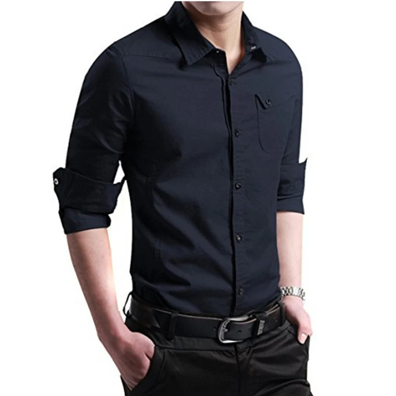 Special Offer 2018 nowy marka koszula męska z długim rękawem topy szczupła na co dzień jednolity kolor biznes męskie koszule Slim Camisa Masculina 4XL Discount 0% Today!