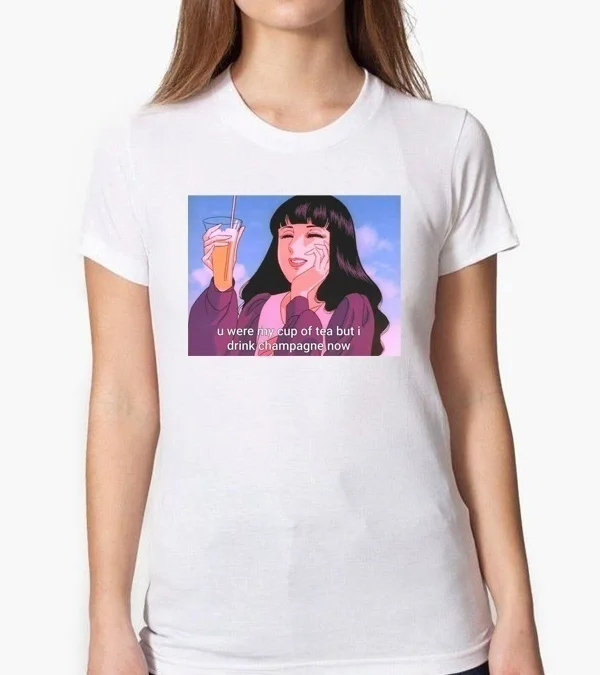 Special Offer PUDO XHM U był moją filiżanką herbaty, ale piję szampana teraz drukowane T Shirt kobiety śmieszny nadruk Tee topy z krótkim rękawem na lato Discount 0% Today!