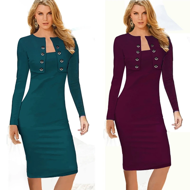 Special Offer Jesienno zimowa damska Business Casual Sliming sukienki ołówkowe elegancka, długa rękaw biurowa, damska odzież do pracy EB10 Discount 28% Today!