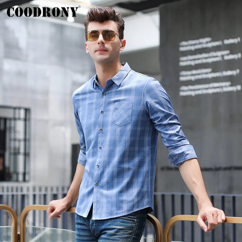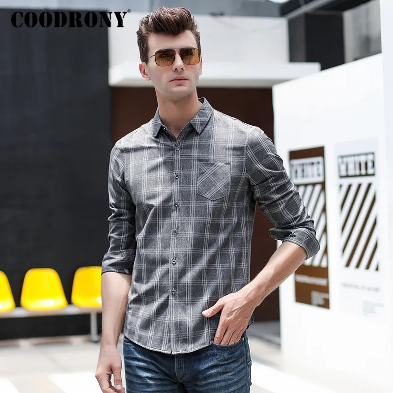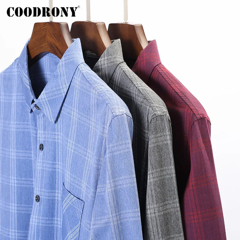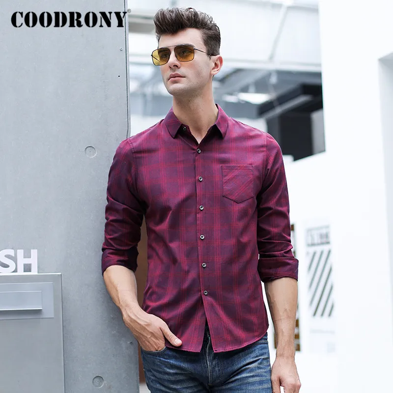 Special Offer COODRONY marka wiosna jesień moda Plaid męskie koszule z długim rękawem koszula mężczyzn z kieszeni Business Casual Camisa Masculina C6007 Discount 40% Today!