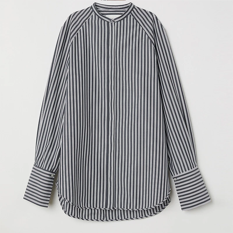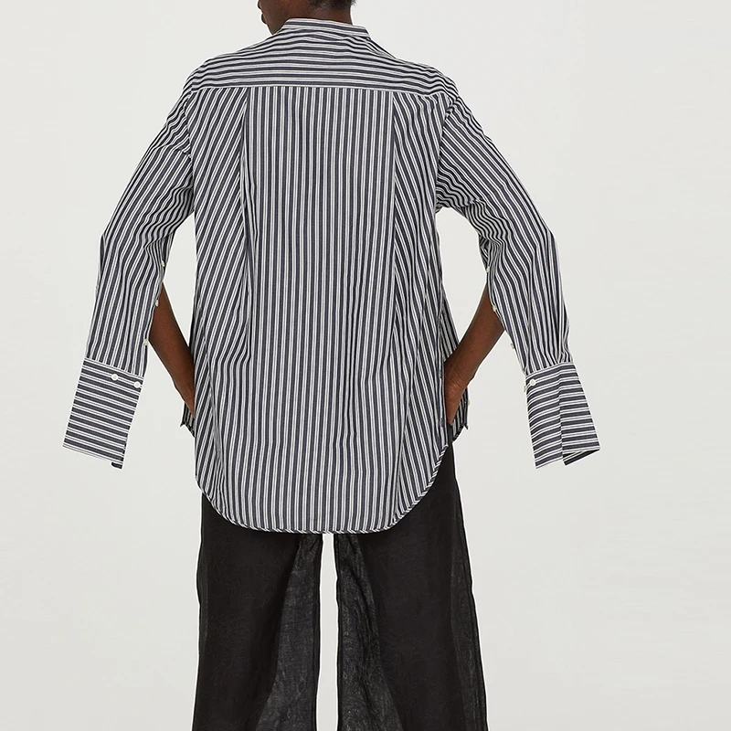 Special Offer Kissmilk Plus rozmiar damska koszula w paski koszula na guziki color block OL rozcięcia po bokach rękawem szczelina Oversize dla Busty kobiet Discount 49% Today!