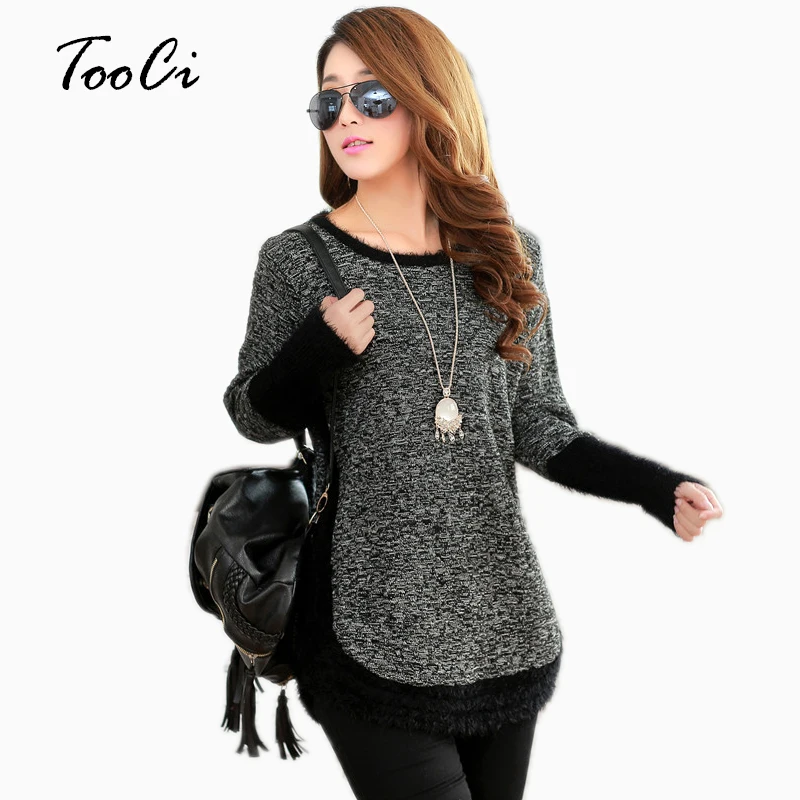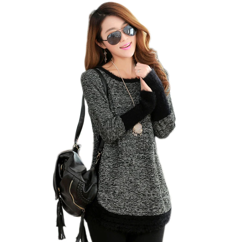 Special Offer Jesień zima kobiety swetry i swetry O neck z długim rękawem topy moher wysokiej elastyczna Patchwork sweter na co dzień luźne swetry Discount 20% Today!