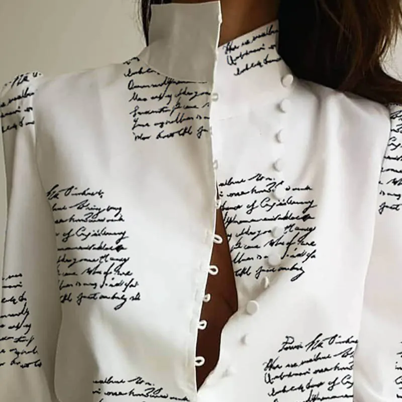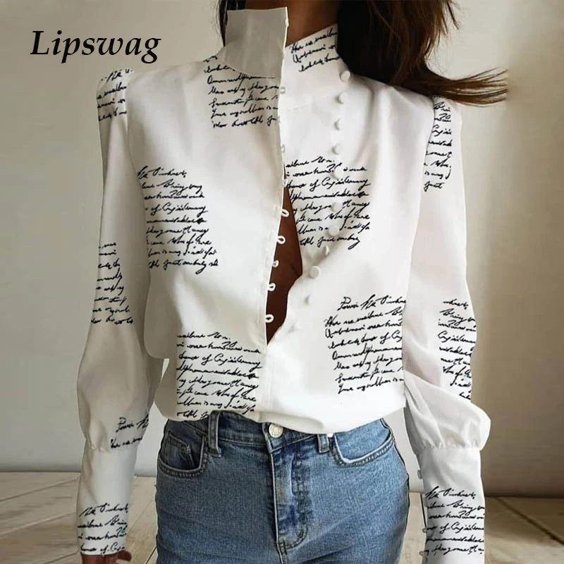 Special Offer Damska koszulka z dekoltem w szpic, zapinana na guziki, biurowa, damska koszulka z nadrukiem, z długim rękawem, wygodna bluzka, topy, Blusas, kobieta Discount 30% Today!
