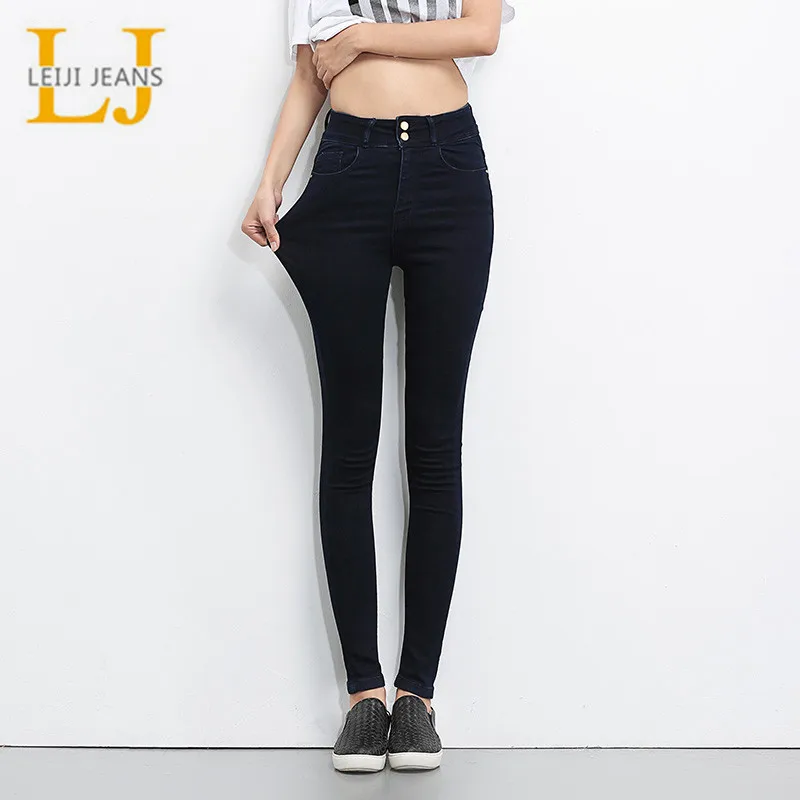 Special Offer LEIJIJEANS 2019 Plus Size guziki damskie jeansy wysokiej talii czarne spodnie damskie wysokie elastyczne spodnie obcisłe rozciągliwe spodnie damskie Discount 65% Today!