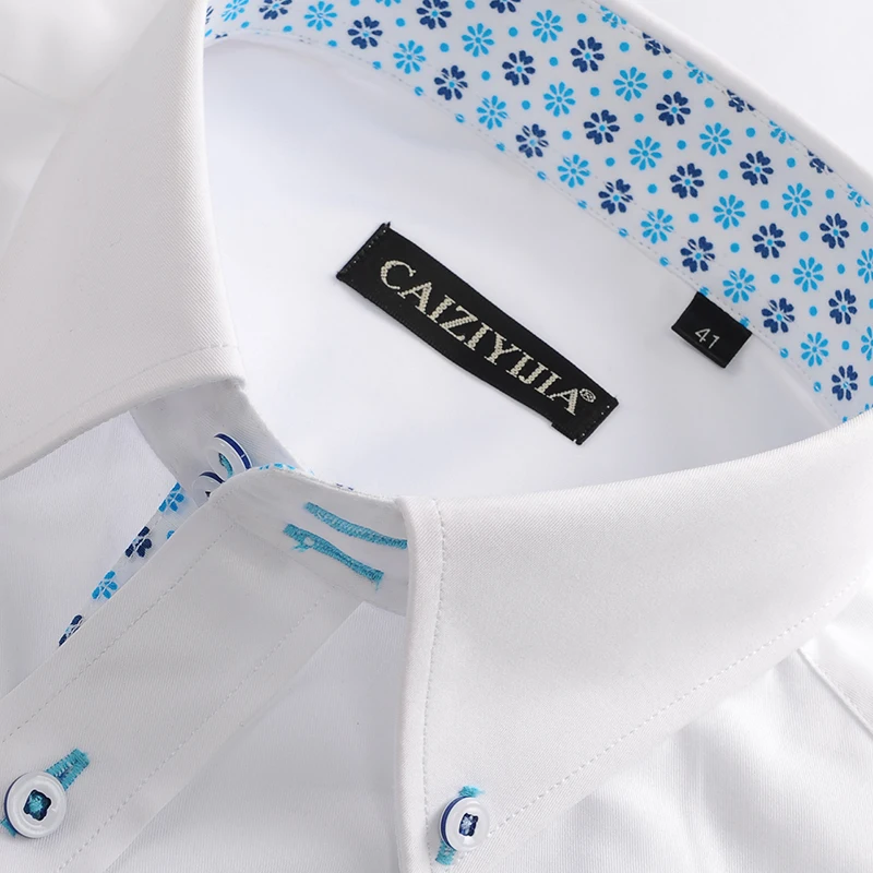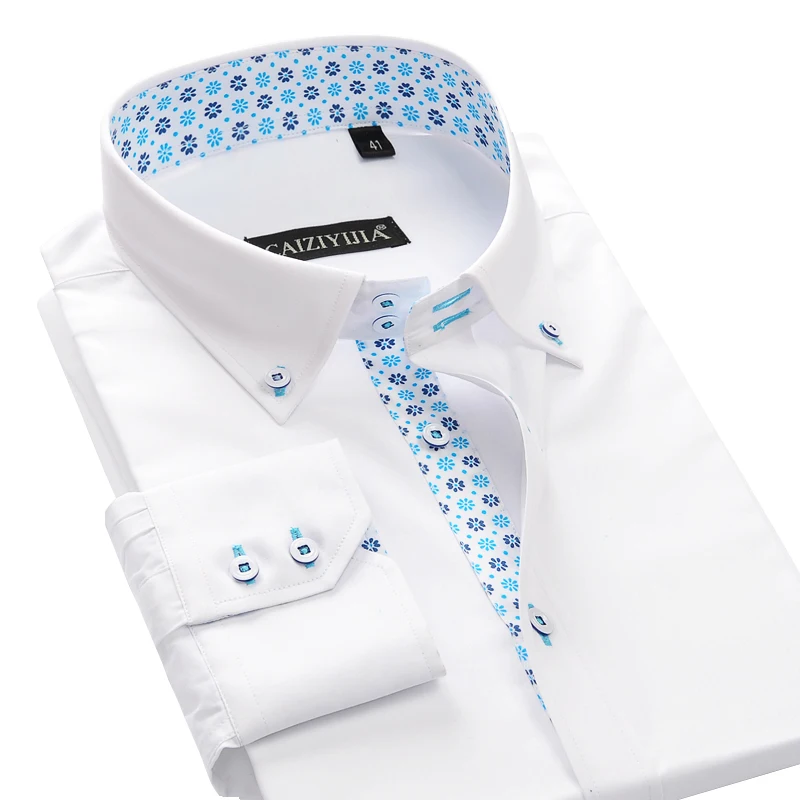 Special Offer 100% bawełna kwiatowy druk dekolt męska sukienka koszula z długim rękawem Slim Fit męskie, eleganckie na co dzień biznes Forma koszule Discount 39% Today!
