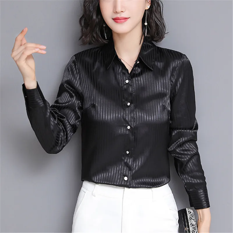 Special Offer Moda jesień kobiety jedwabne koszule kobieta w paski satynowa koszula Plus rozmiar jedwabne bluzki damskie topy i bluzki Blusas Mujer De Moda Discount 45% Today!
