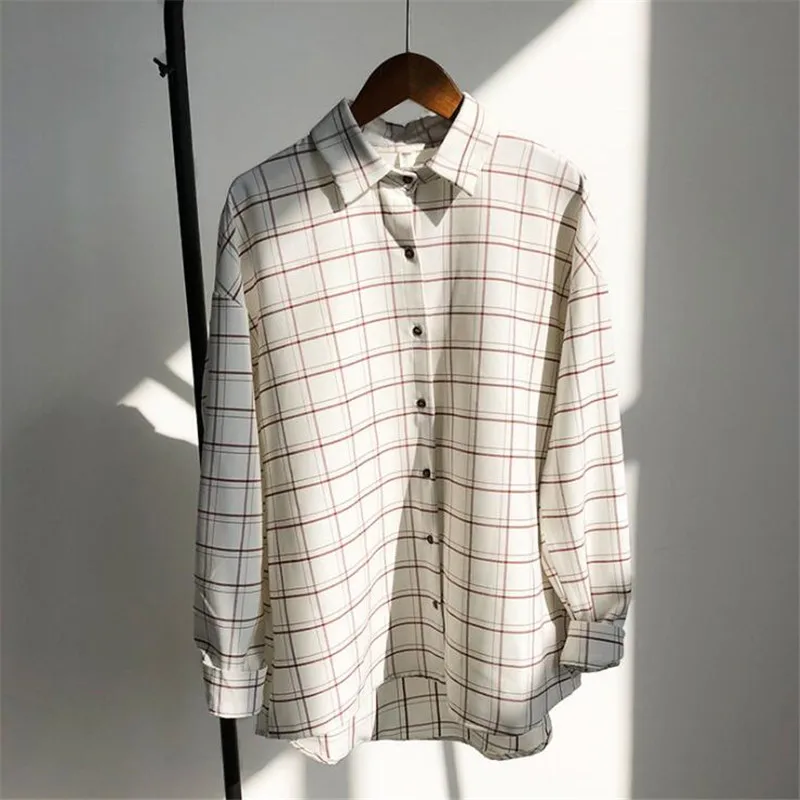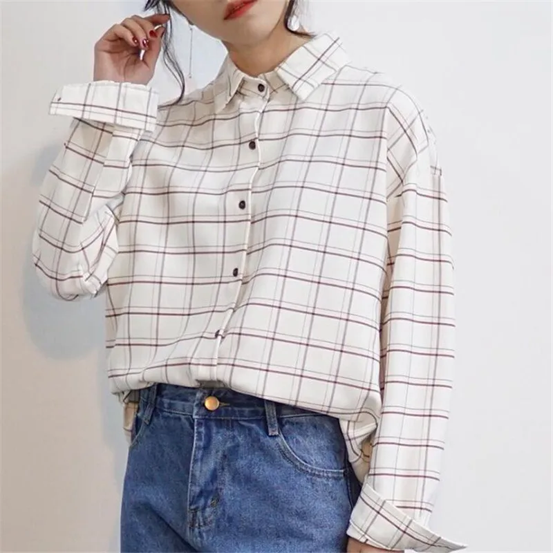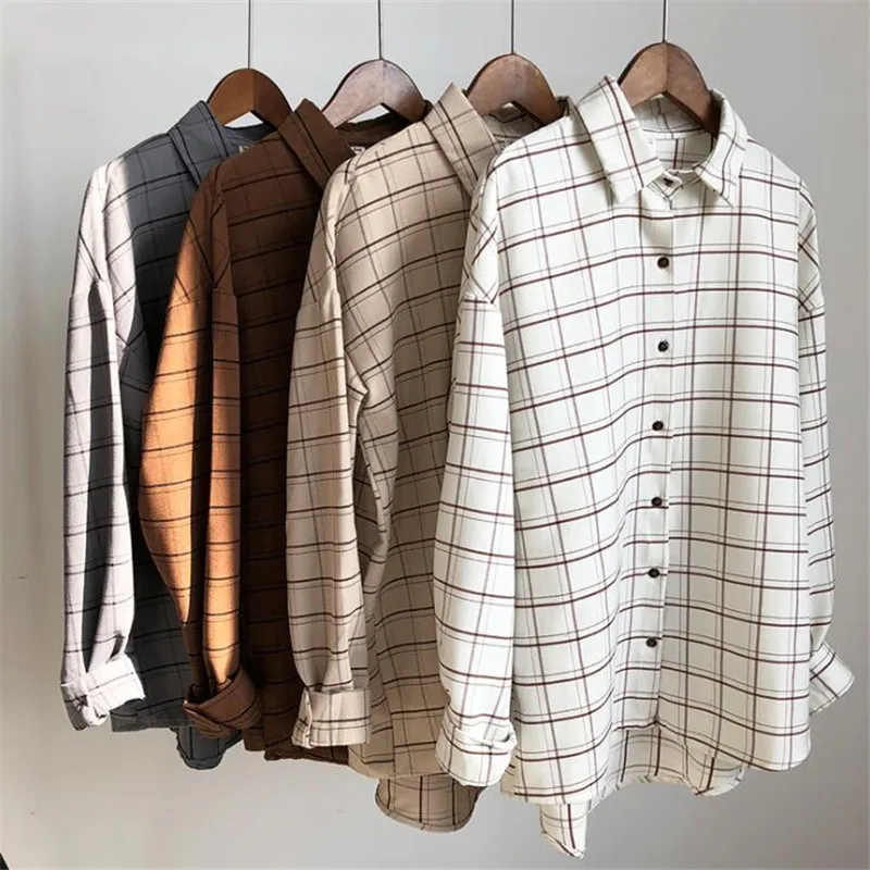 Special Offer Luźna, bawełniana koszula w kratkę plaid College bluzki 2020 klatka kobiet z długim rękawem Casual kobiety bluzka koszula biuro topy damskie Discount 22% Today!