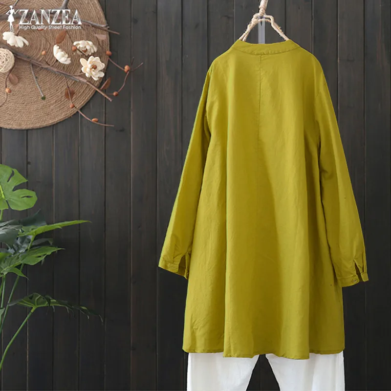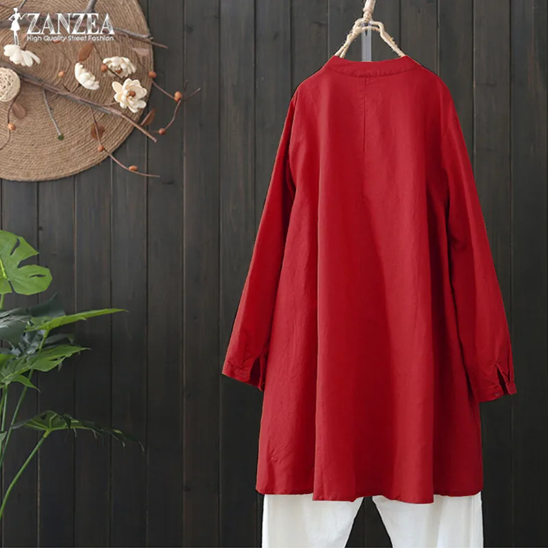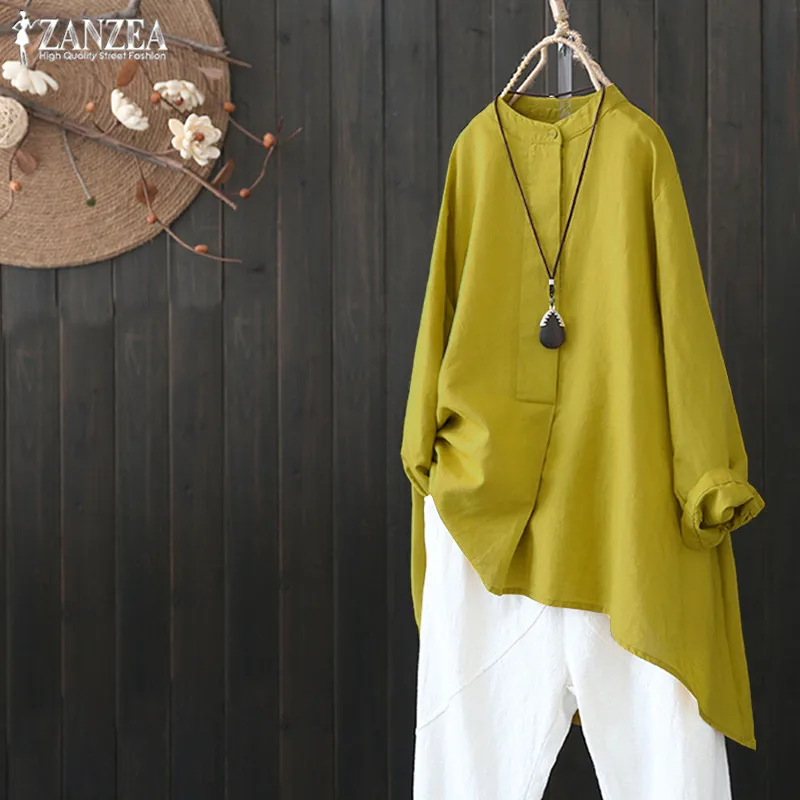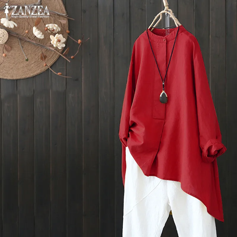 Special Offer Plus rozmiar kobiet lniana bluzka 2019 ZANZEA kobiet dorywczo przycisk koszulka tunika w stylu vintage nieregularne koszule eleganckie OL pracy Blusas Discount 37% Today!
