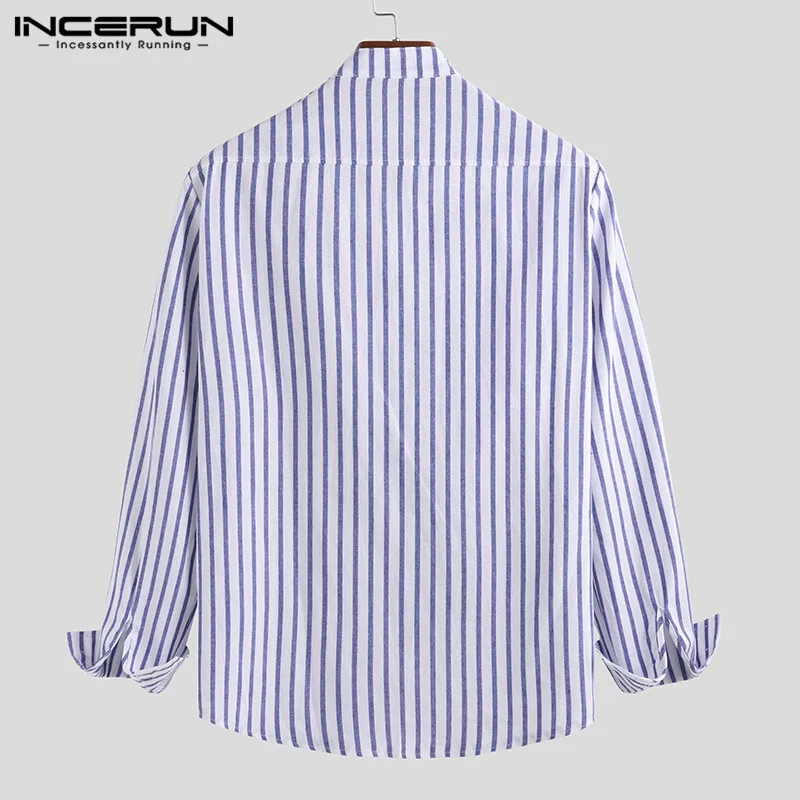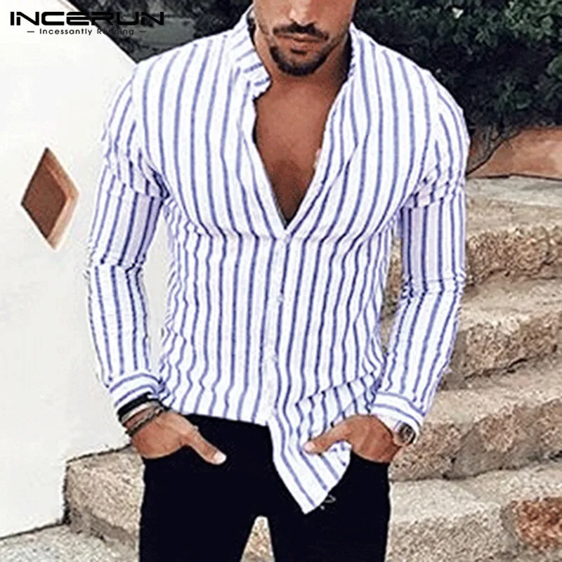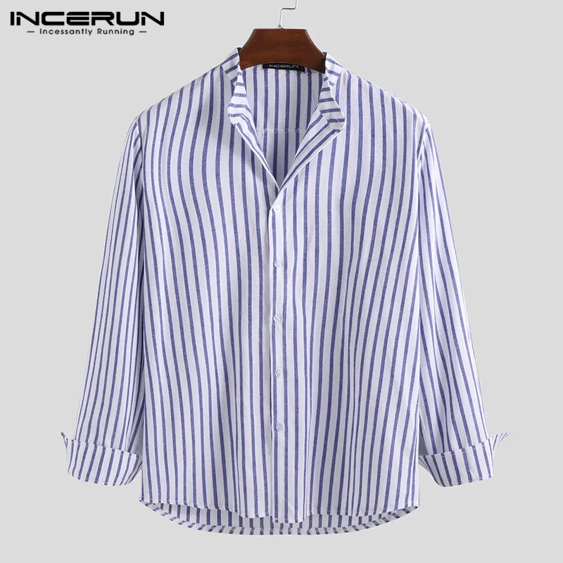 Special Offer INCERUN Casual Men koszula w paski z długim rękawem stojak kołnierz Streetwear szykowna, markowa koszule biznesowe mężczyźni Camisa Masculina 2019 S 5XL Discount 41% Today!