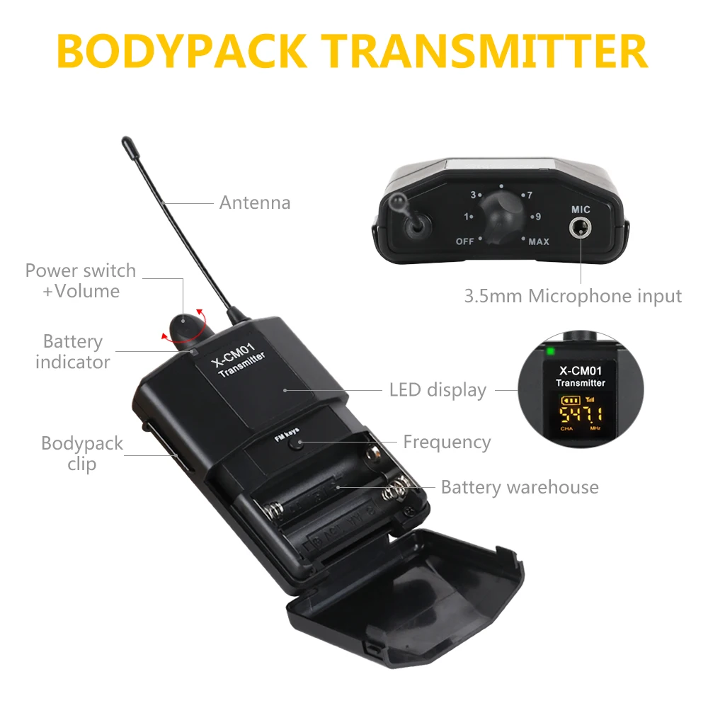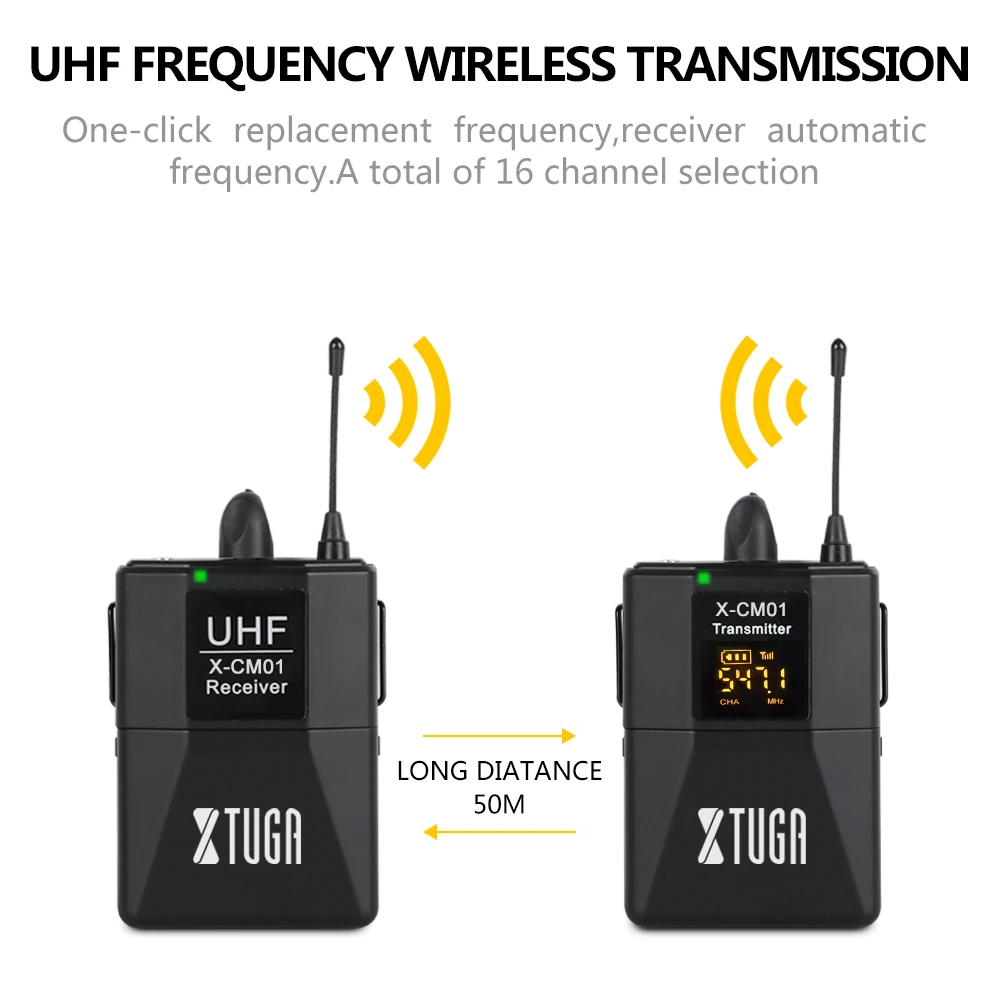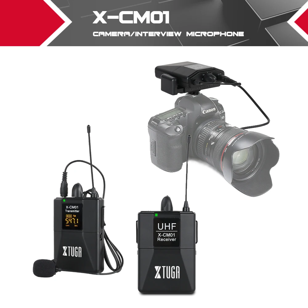 Special Offer Bezprzewodowy mikrofon krawatowy XTUGA UHF z 16 wybieranymi kanałami wyposażony jest w dwa kable 3.5mm o zasięgu do 164ft dla lustrzanka cyfrowa Discount 5% Today!