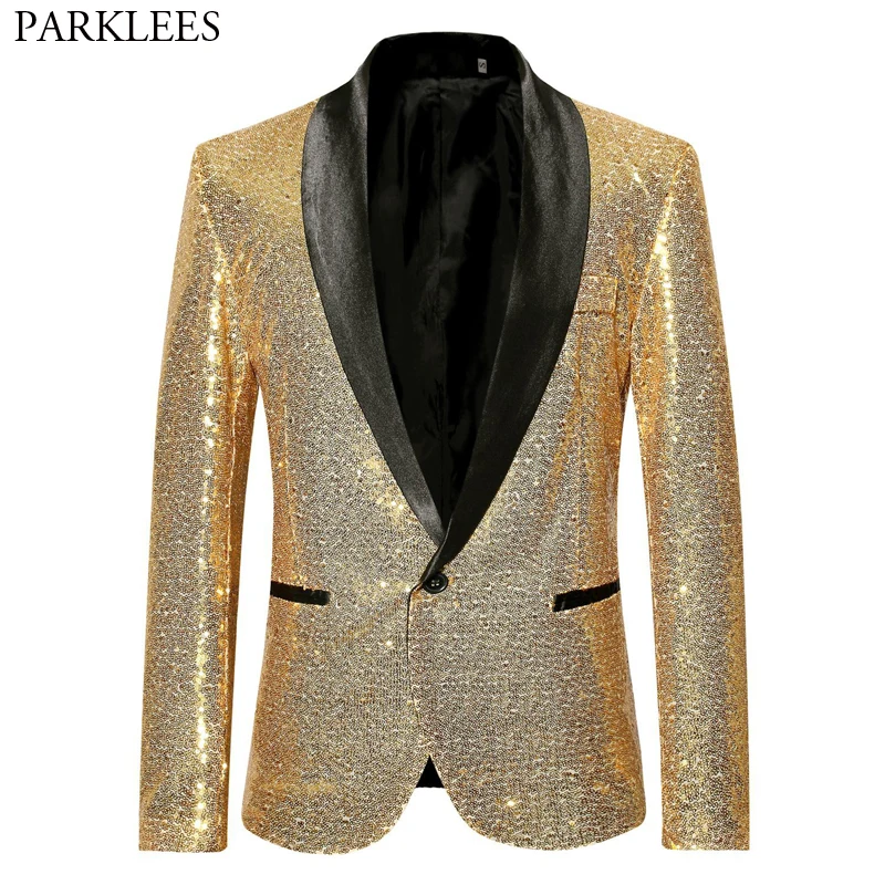 Special Offer Błyszczące złoto cekiny ze świecidełkami brokatem garnitury i marynarka mężczyzn 2019 nowy duży kołnierz klub DJ mężczyzna żakiet z dzianiny dresowej sceniczne ubrania dla piosenkarki Xxl Discount 50% Today!