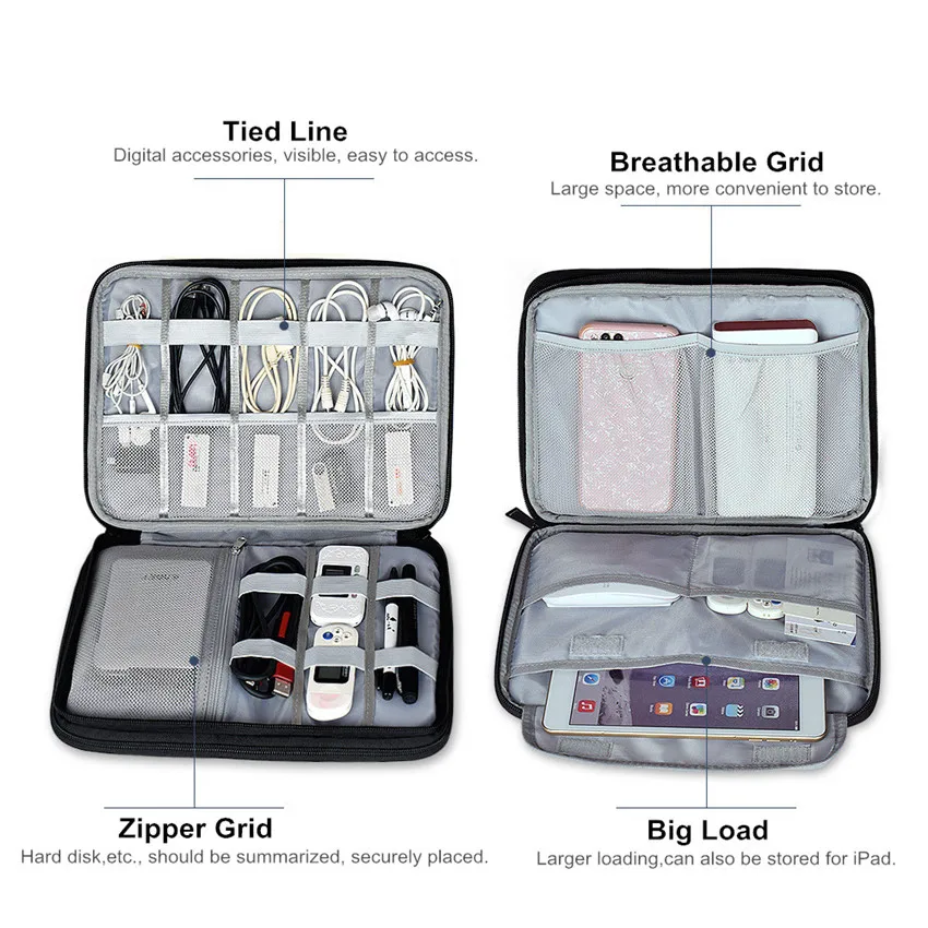 Special Offer Torba do przechowywania kabli o dużej pojemności dwuwarstwowa torba podróżna akcesoria do elektronarzędzi etui na organizery etui do ipada ładuje słuchawki Discount 15% Today!