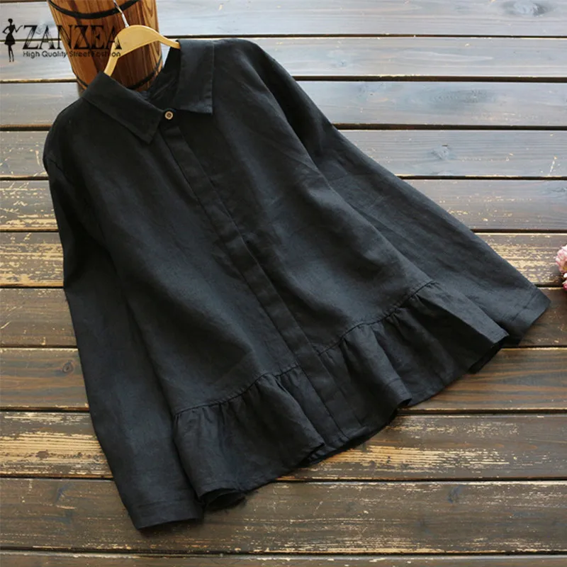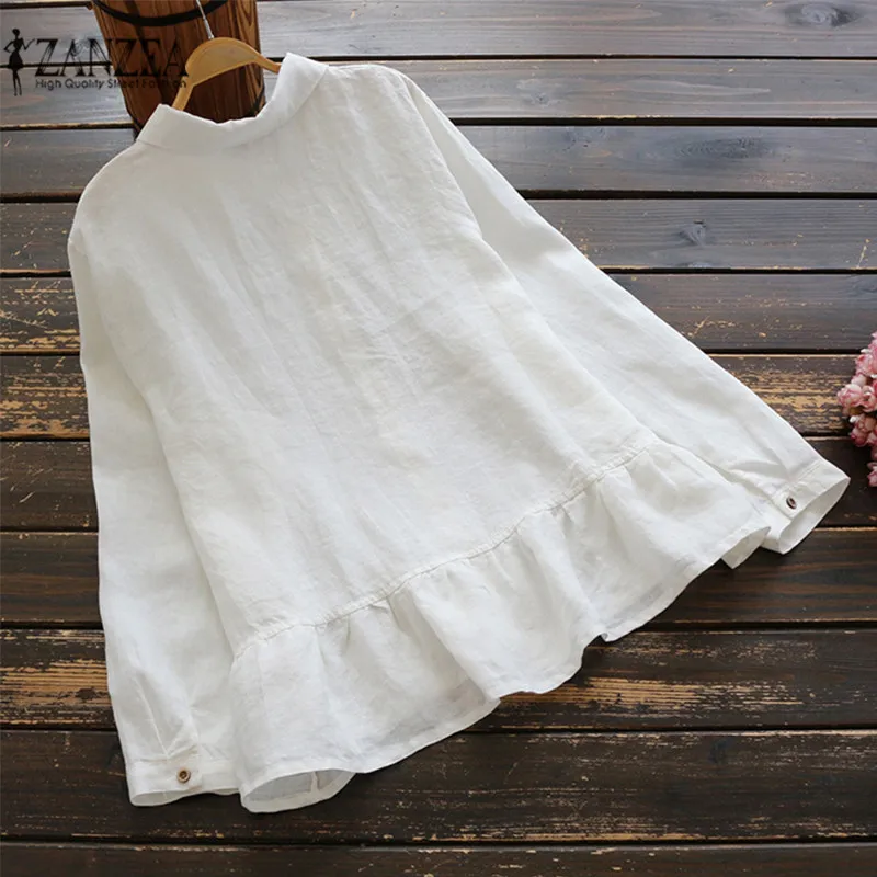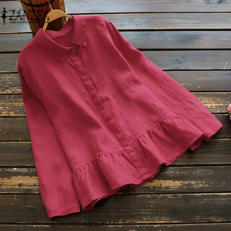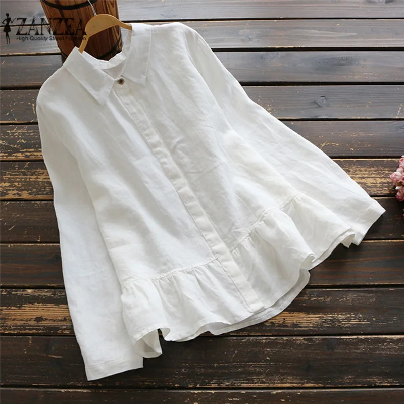 Special Offer Plus rozmiar ZANZEA Vintage kobiety wiosna z długim rękawem bluzka z marszczonymi rękawami koszula z mieszanki bawełny i lnu Casual z litego materiału Femininas praca Blusas 2019 Discount 40% Today!
