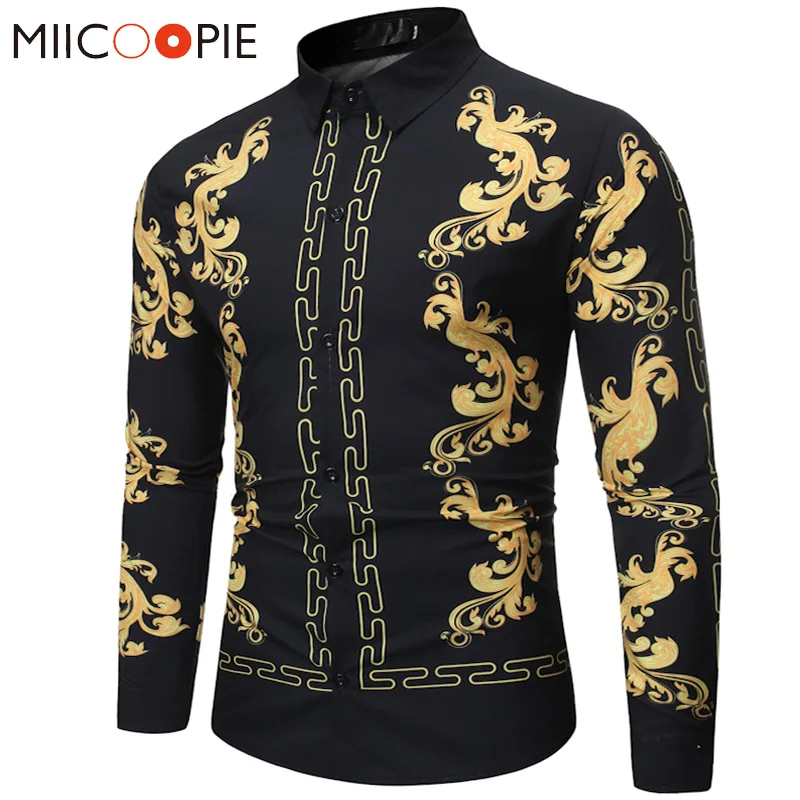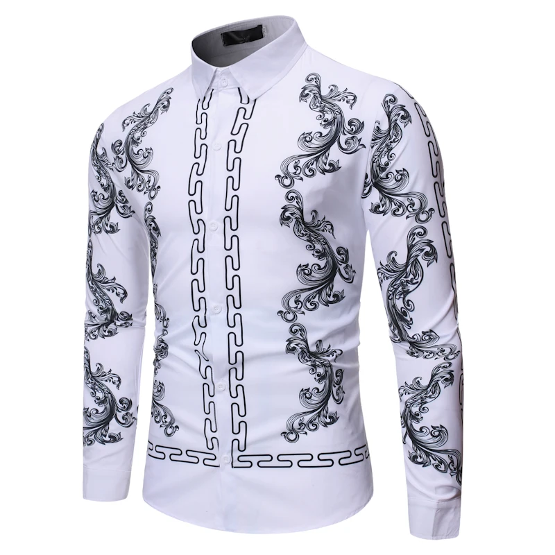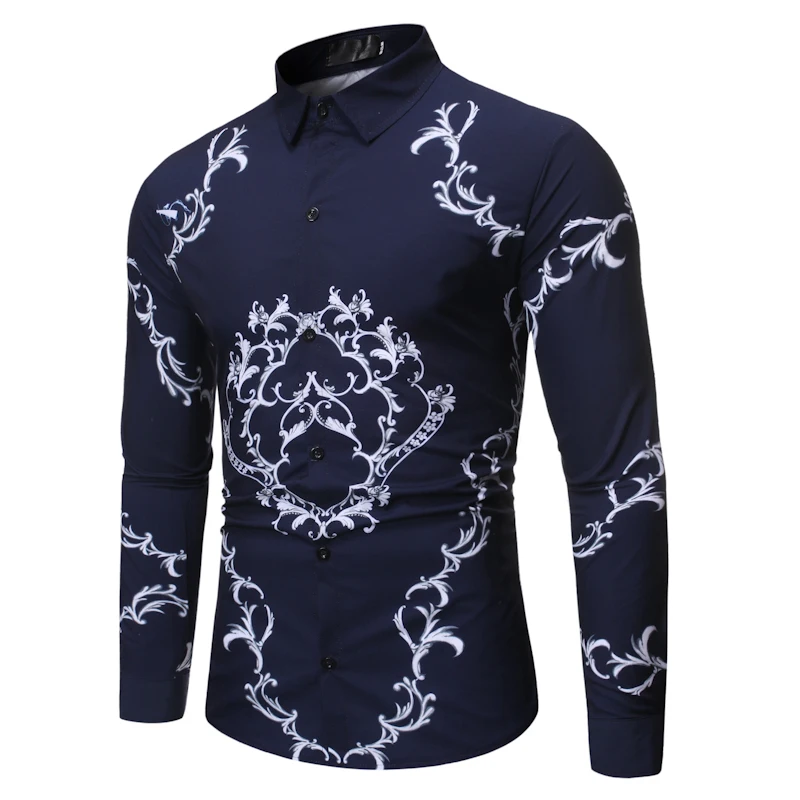 Special Offer Bluzka w roślinny wzór moda męska Casual Luxury dwór królewski z długim rękawem koszulki z nadrukiem mężczyźni sukienka społeczna biznesowa koszulka Homme Streetwear Discount 20% Today!