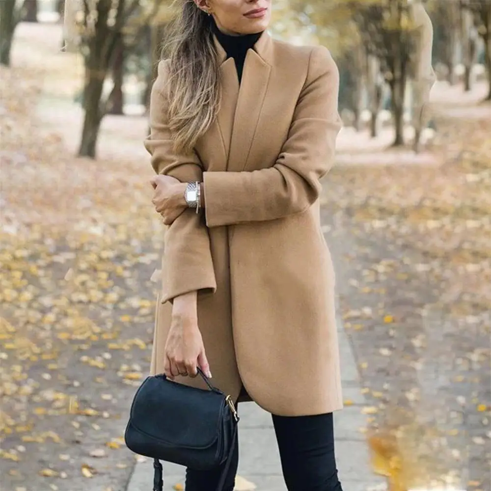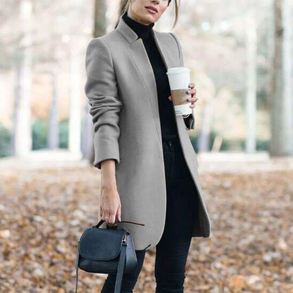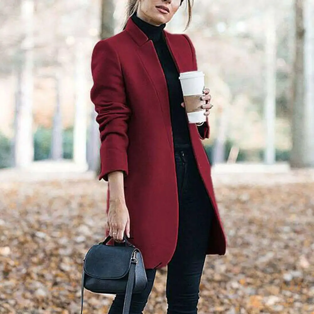 Special Offer Moda na zewnątrz panie zimowe ciepłe długie biuro zakupy topy elegancki płaszcz znosić stoisko kołnierz Slim Fit kobiety wełny płaszcz stałe Discount 20% Today!