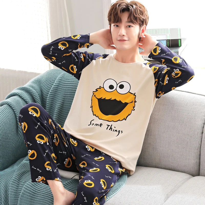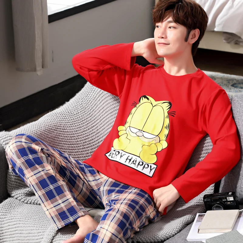 Special Offer Yidanna piżama męska komplet bawełniana bielizna nocna nadruk kreskówkowy bielizna nocna długi rękaw snu odzież Casual Nighties jesień męski salon Discount 30% Today!