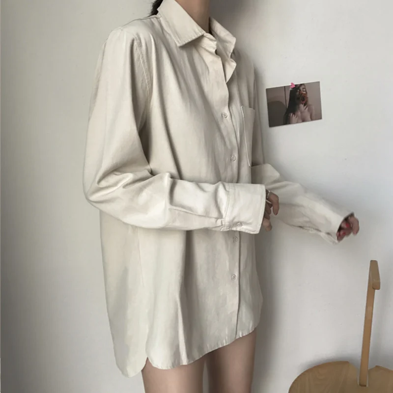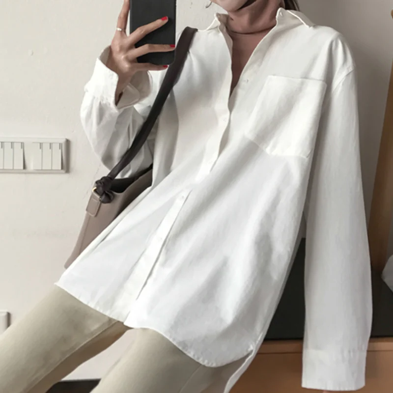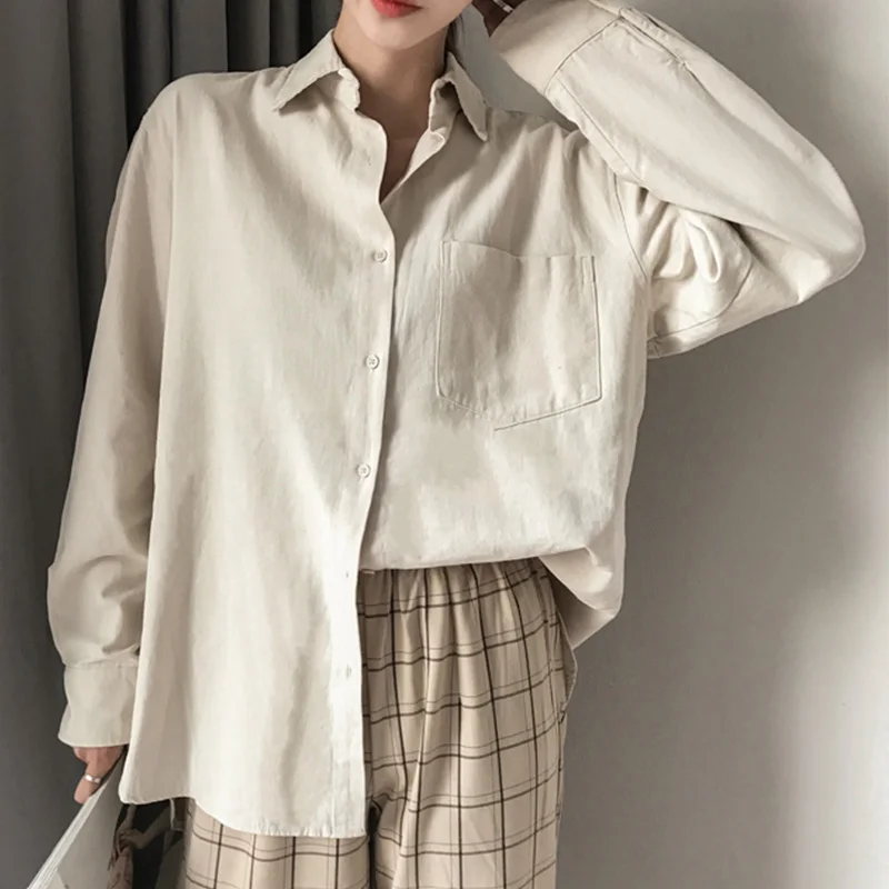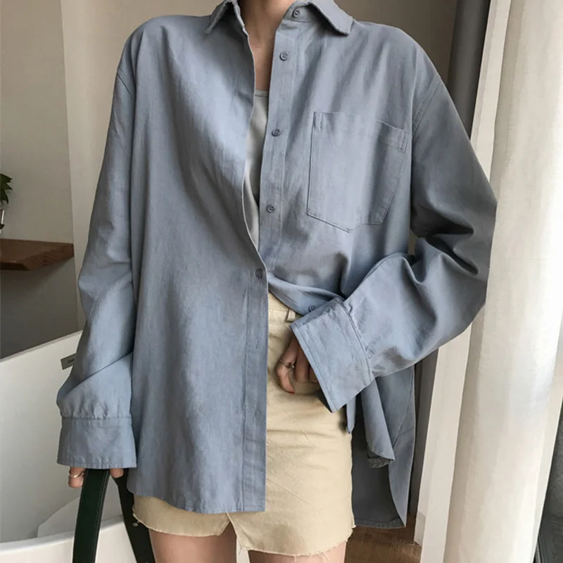 Special Offer Damska biała, ponadgabarytowa koszula z mieszanki bawełny i lnu 2020 Apricot Blue OL koszule z długim rękawem damski, wiosenny lato jednokolorowa na co dzień bluzki damskie Discount 40% Today!