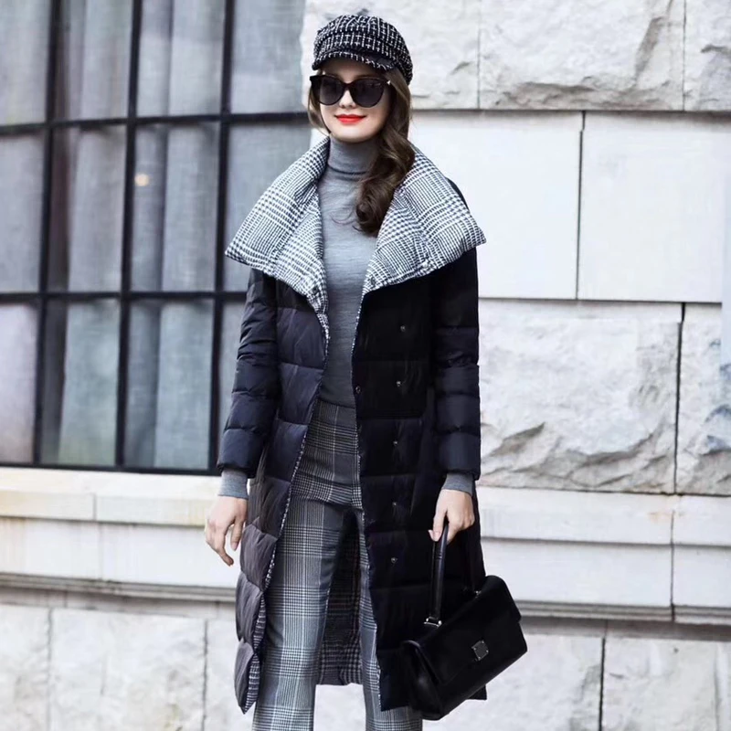 Special Offer Dwustronna damska kurtka puchowa długi zimowy golf biały płaszcz z kaczego puchu kobiece podwójne piersi Plus rozmiar ciepły flanela parki Discount 50% Today!