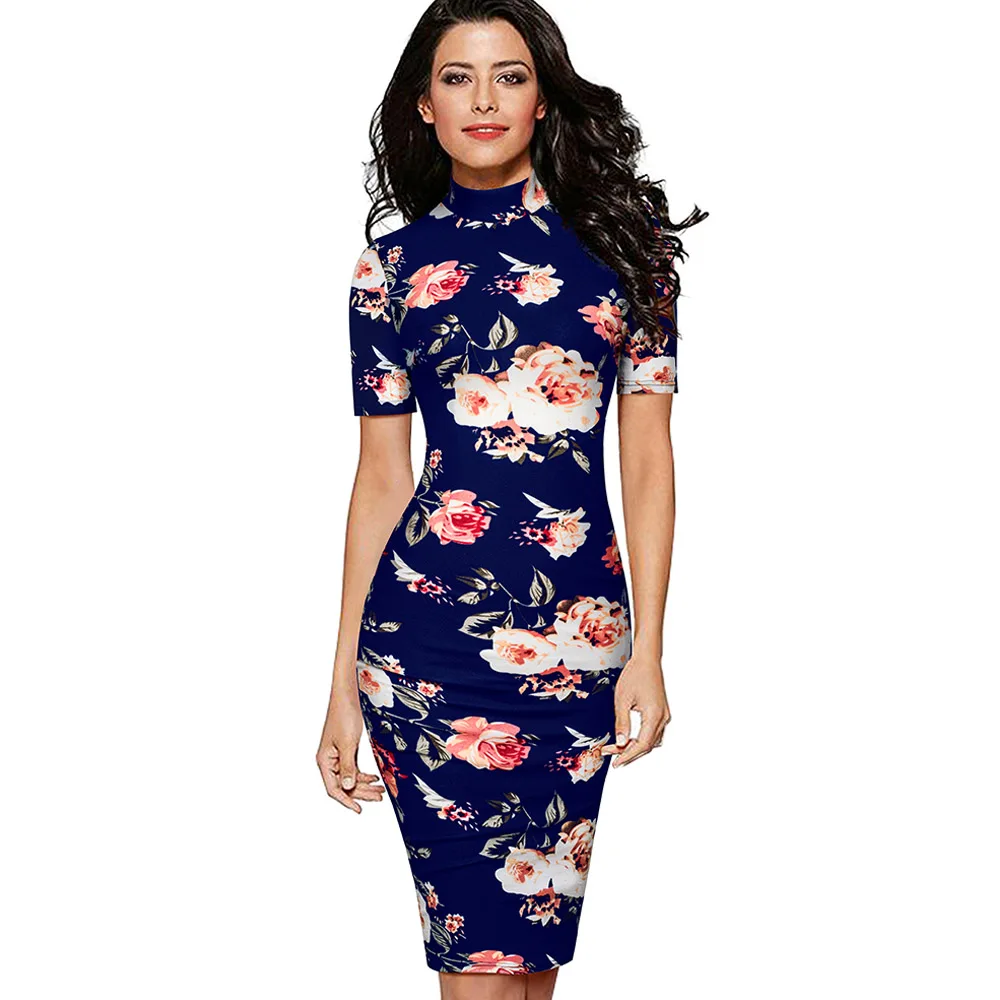 Special Offer Ładny na zawsze elegancki kwiatowy drukowany praca w biurze vestidos Business Party wąska obcisła damska sukienka ołówkowa B578 Discount 60% Today!