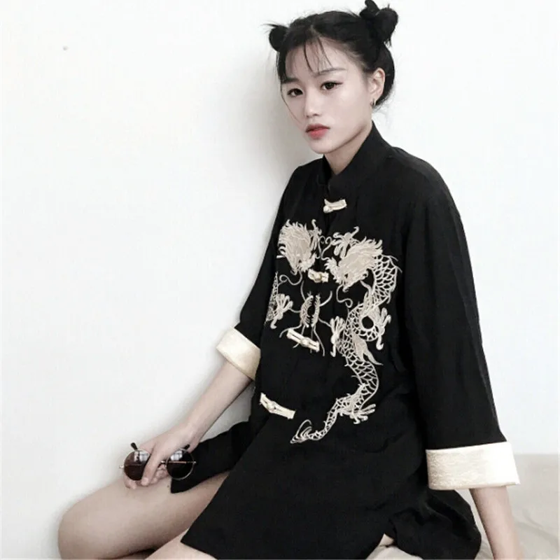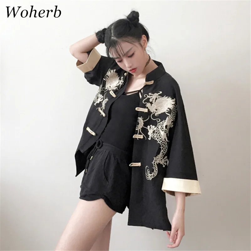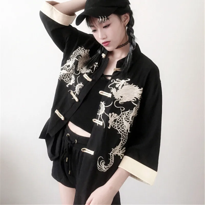 Special Offer Woherb haft ze wzorem zwierzęcia w stylu chińskim Mujer koszula 2020 New Arrival stójka patchworkowa bluzka kobiety przycisk Blusas 74068 Discount 13% Today!