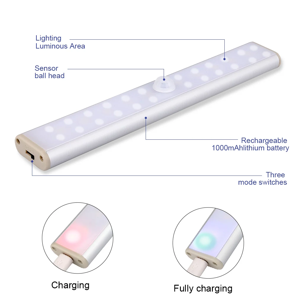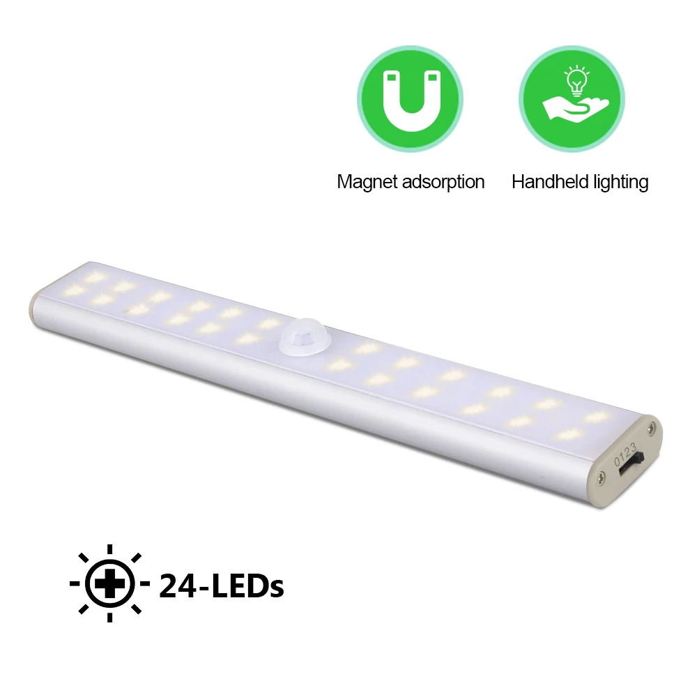 Special Offer Oświetlenie LED do szafy na szafkę bezprzewodowa oświetlenie 24 czujnik ruchu LED oświetlenie kuchni USB akumulator szafa szafa Discount 35% Today!