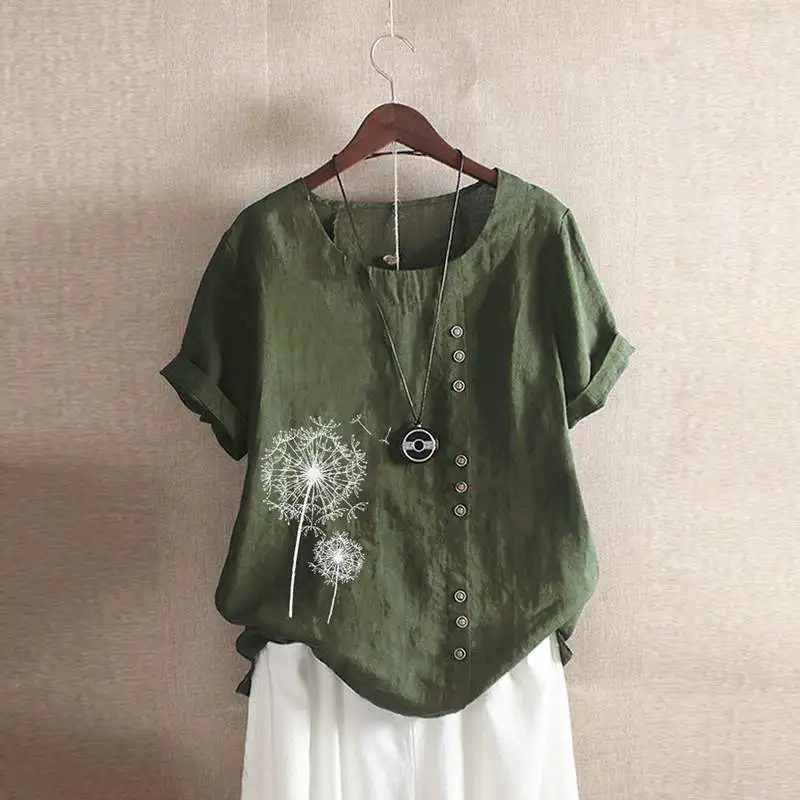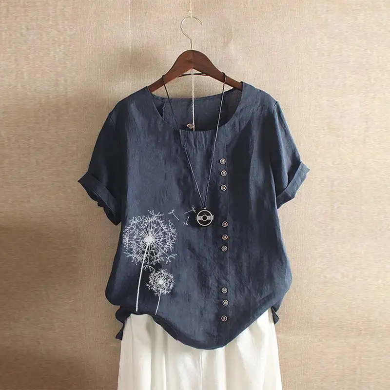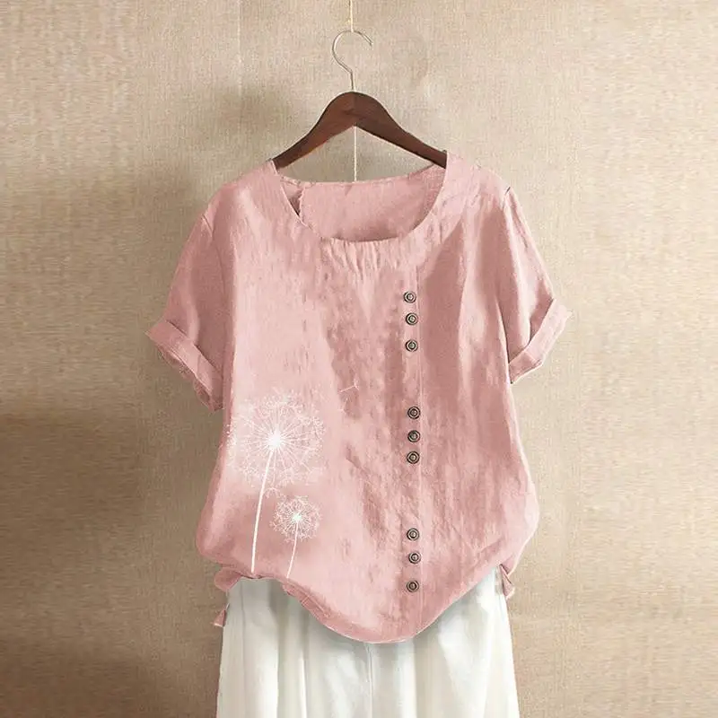Special Offer Plus rozmiar Vintage lato Floral wydrukowano bluzka z krótkim rękawem kobiety tunikowe bluzki kobiet Blusas Casual solidna koszula z mieszanki bawełny i lnu Mujer Discount 40% Today!