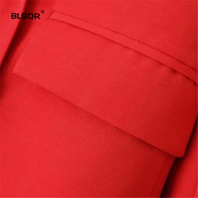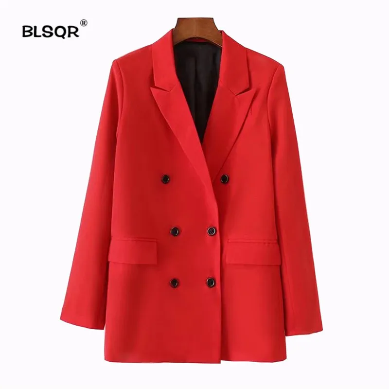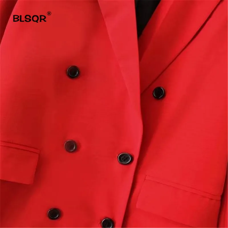 Special Offer BLSQR kobiety czerwony garnitur Blazer 2018 wiosna modna kurtka podwójne piersi kieszeń kobiety Blazers kurtki praca biuro garnitur Discount 40% Today!