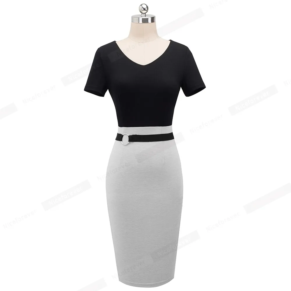 Special Offer Vintage Berif nosić do pracy Patchwork pierścień sukienka biznes kobiety eleganckie biuro kobiece obcisła sukienka HB497 Discount 40% Today!
