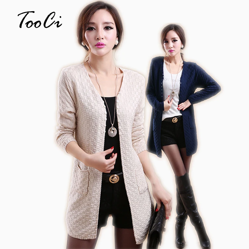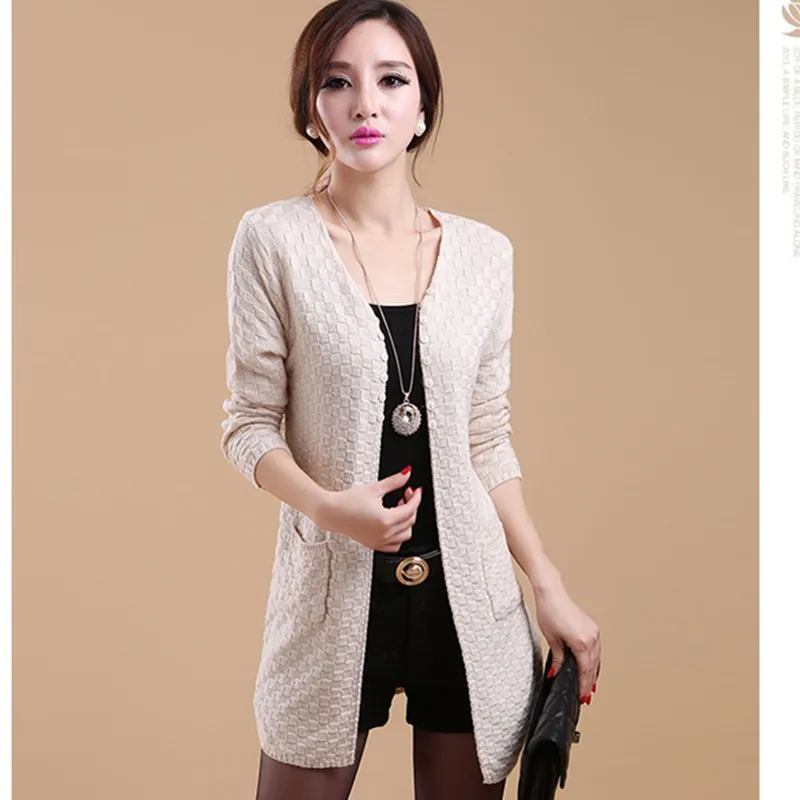 Special Offer Nowa wiosna kobiet beżowy sweter na co dzień z długim rękawem kardigany z dzianiny damskie swetry moda długi sweter płaszcz z kieszeniami Discount 20% Today!