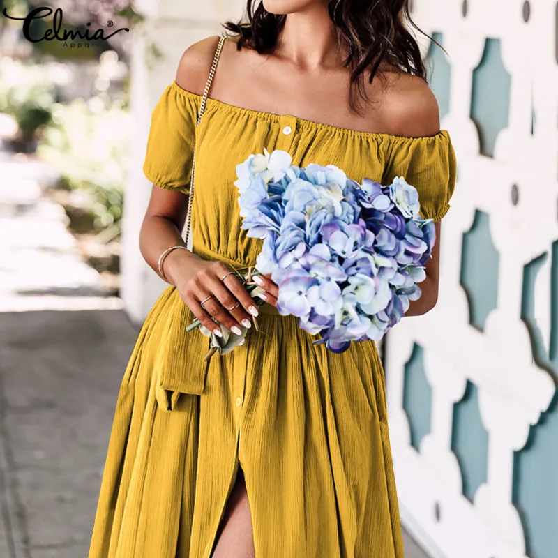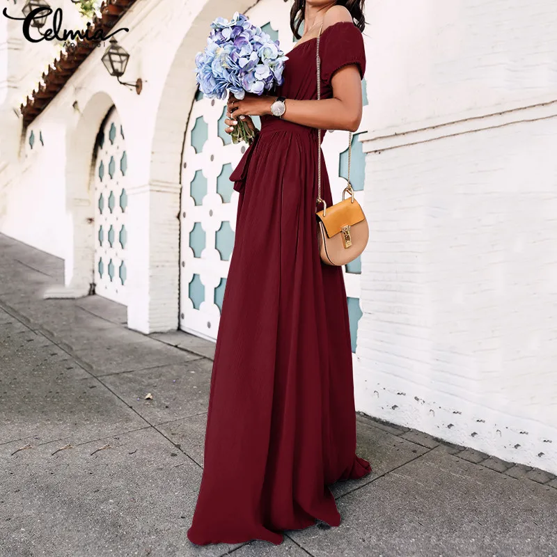 Special Offer 2019 artystyczna sukienka Celmia lato kobiety wzburzyć długa, maksi sukienka Sexy Off ramię przyciski Party Vestidos Mujer Plus rozmiar Sundress Discount 30% Today!