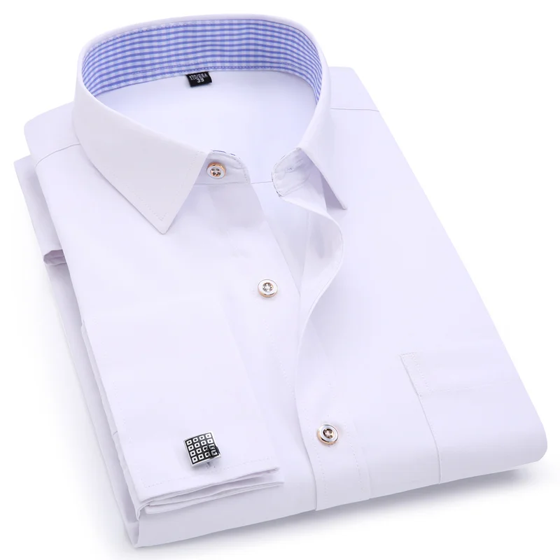 Special Offer Francuski mankiet męska koszula z długim rękawem sukienka koszula Slim Fit mężczyzna społeczne biznes na co dzień spinki do mankietów spinki do mankietów ślub bankiet koszula wysokiej jakości Discount 35% Today!