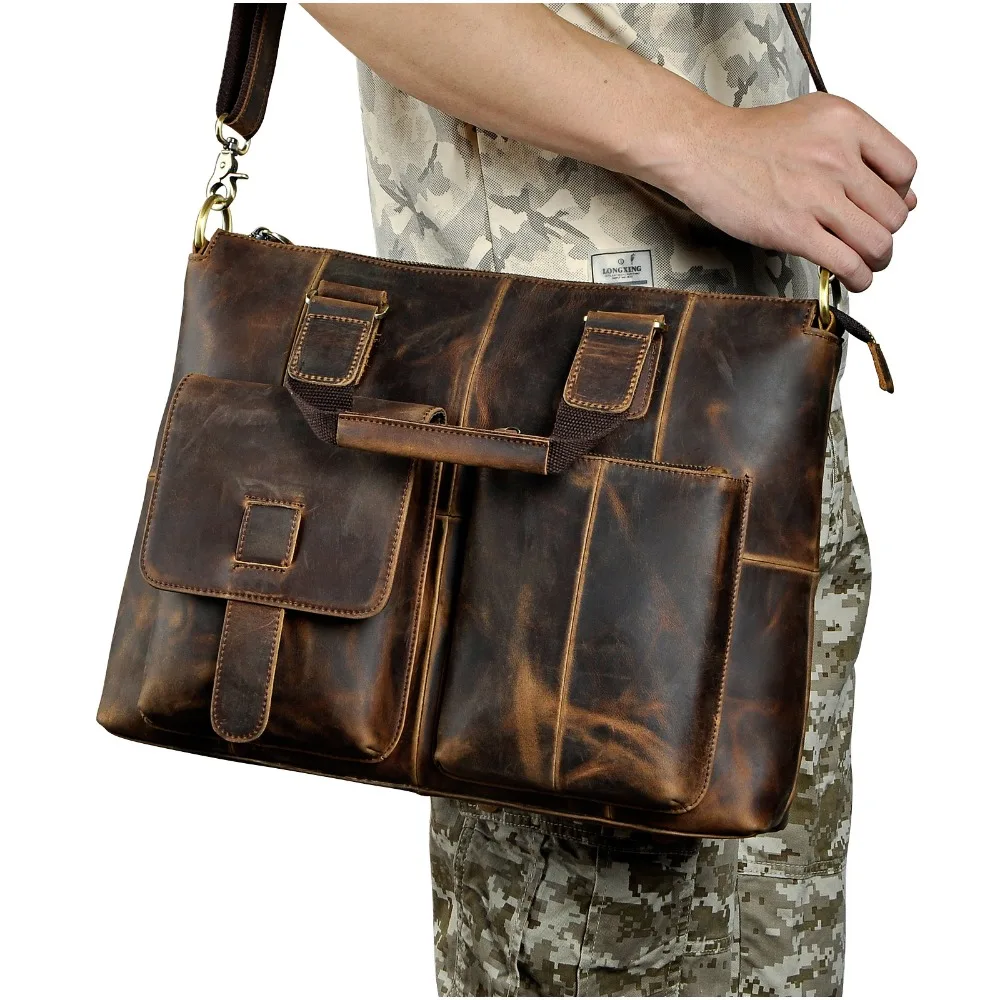 Special Offer Męski oryginalny skórzany design antyczny Retro podróż walizka biznesowa 15 \"etui na laptopa torba na dokumenty torba na ramię B260 d Discount 48% Today!