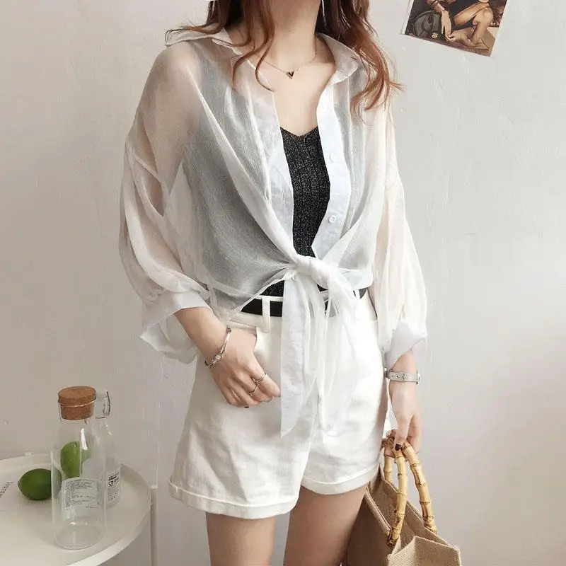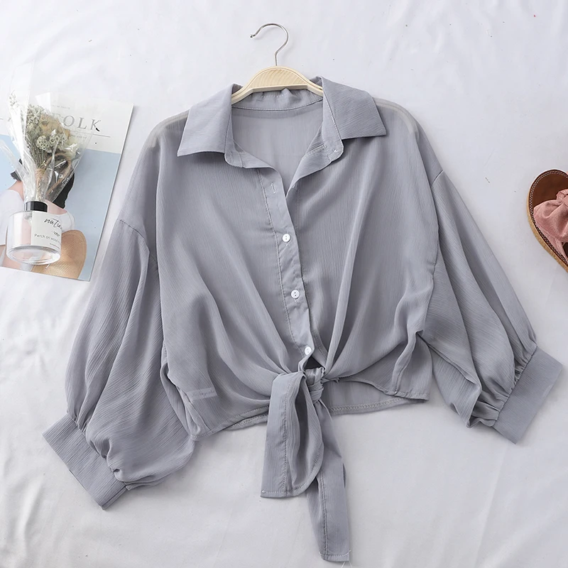 Special Offer HELIAR latarnia rękaw szyfonowe koszule damskie odzież robocza pani zapinana na guziki koszula z długim rękawem bluzka wiązana w talii topy eleganckie bluzki Discount 50% Today!