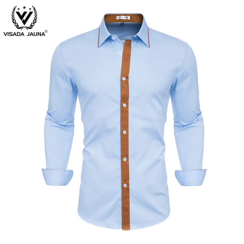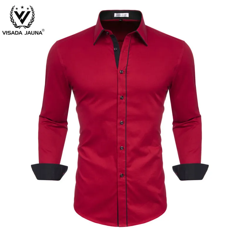 Special Offer VISADA JUANA 2019 wiosna na co dzień z długim rękawem solidna Slim Fit społeczna koszula biznesowa mężczyźni bawełniana sukienka marka mężczyźni odzież wygodna Discount 56% Today!