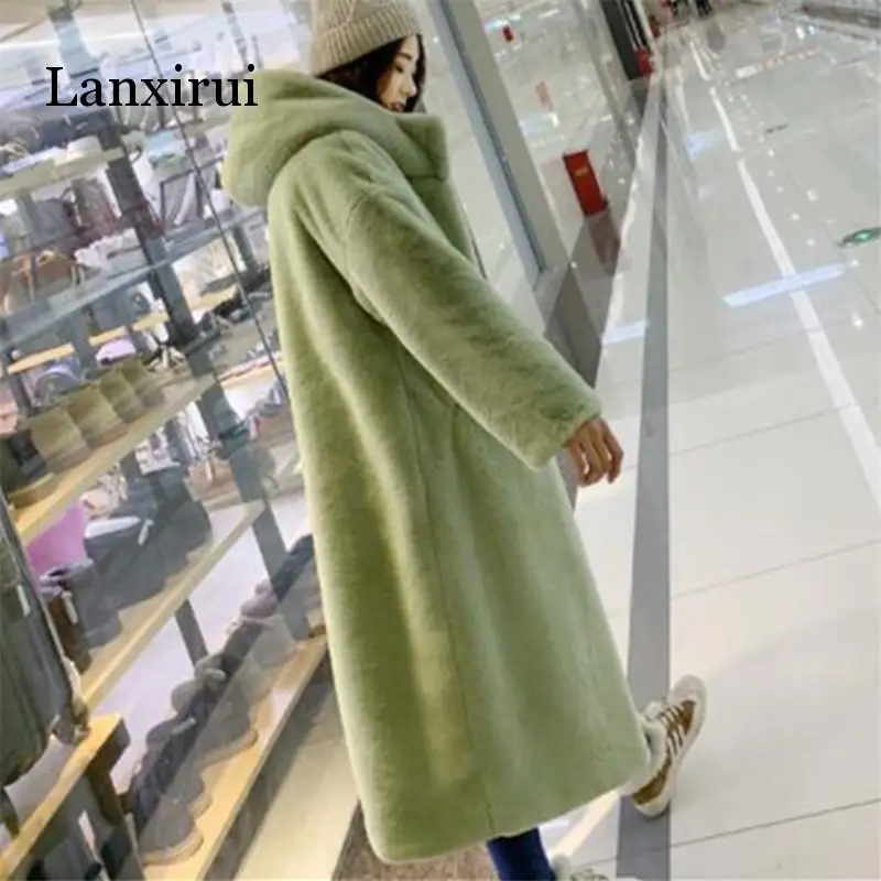 Special Offer Jesienno zimowa Mink kobiety futro ubrania Plus rozmiar koreański Faux futro Streetwear z kapturem luźny, gruby ciepły długi płaszcz żeński Discount 8% Today!