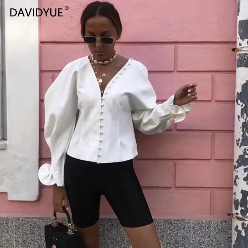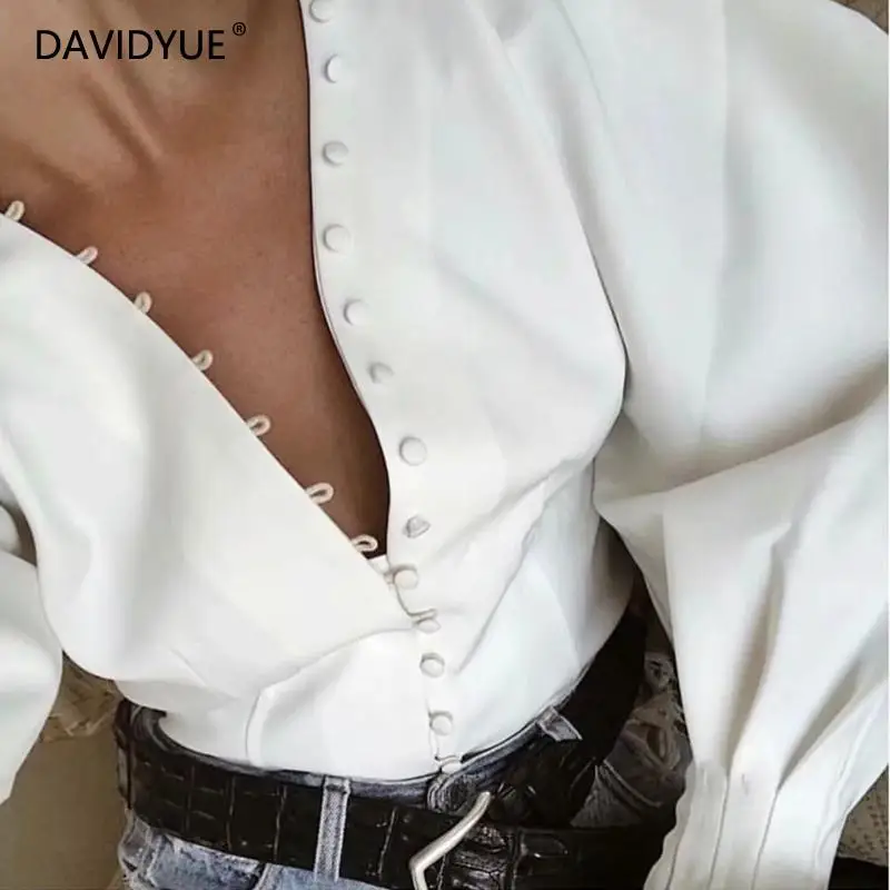 Special Offer 2019 vintage button biała bluzka koszule koreańskie damskie topy i bluzki Streetwear odzież z długim rękawem biurowa, damska bluzki Discount 35% Today!